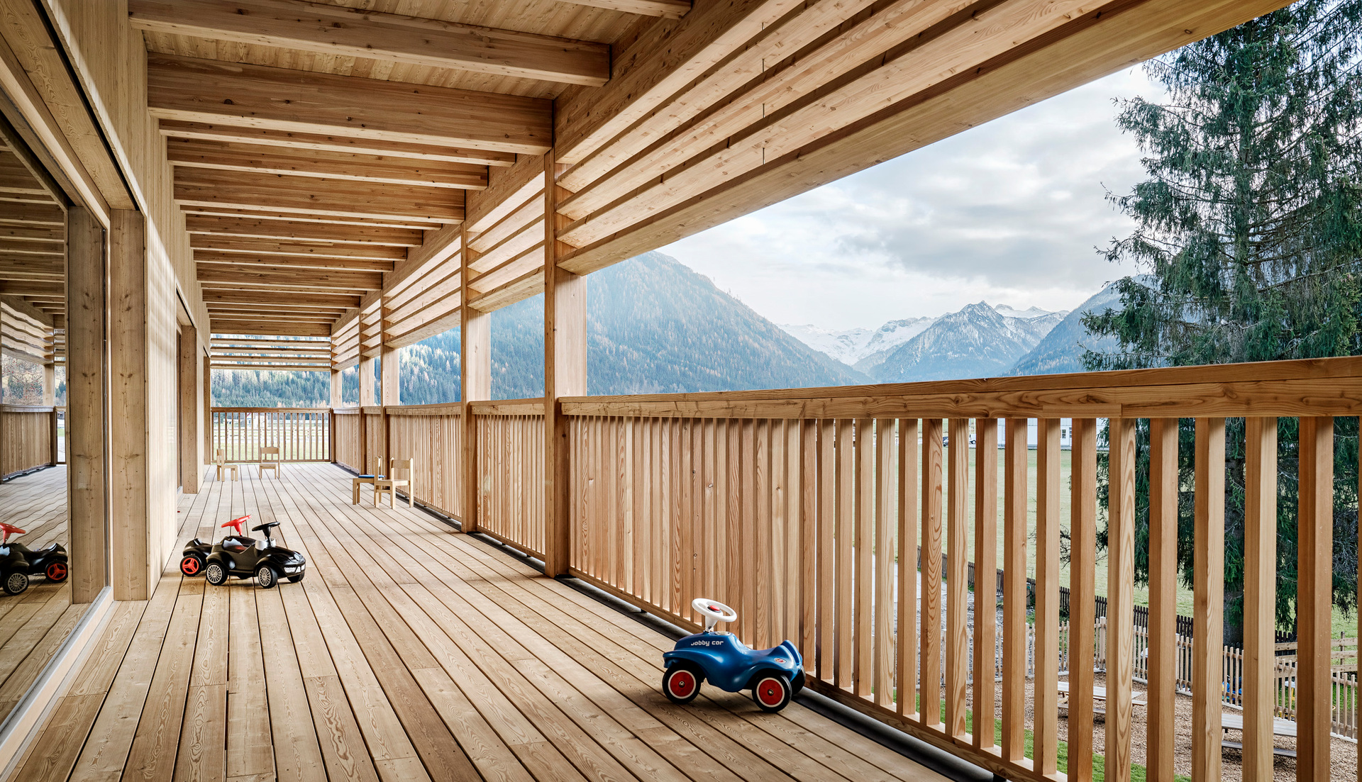 - Holzbau, Überwiegende Verwendung von Dämmstoffen aus nachwachsenden Rohstoffen, Vermeidung von PVC für Fenster, Türen, Vermeidung von PVC im Innenausbau