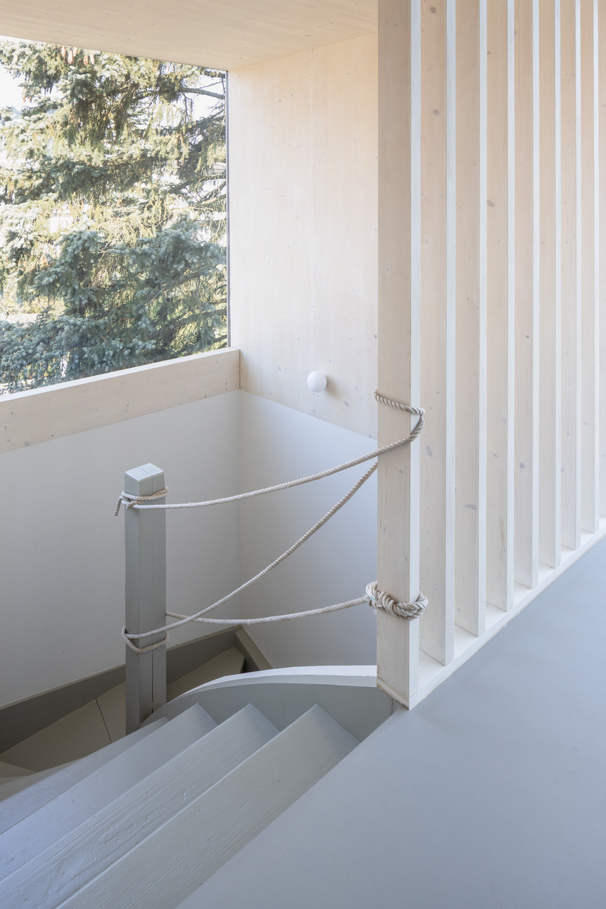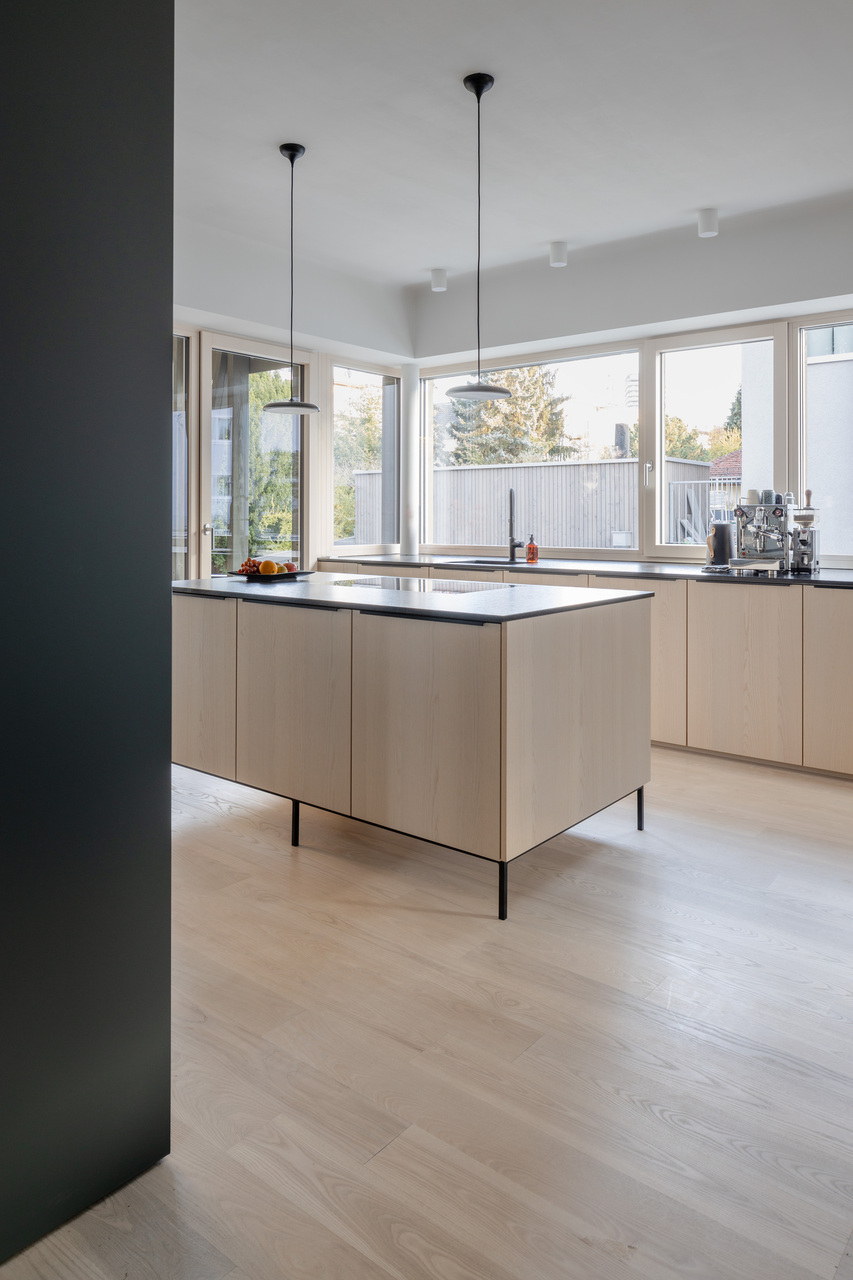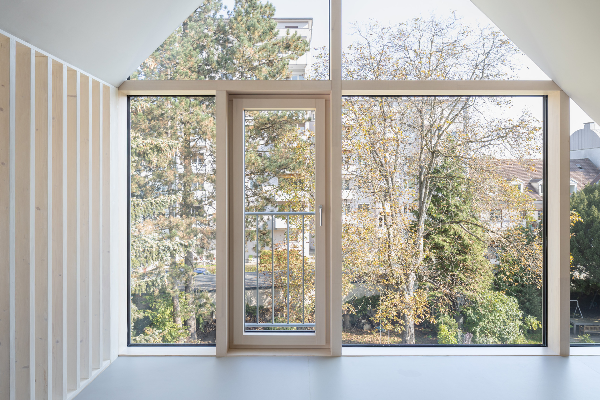 Während sich die Eingriffe im Obergeschoss auf Bad und Oberflächen konzentrierten, wurde der vormals kalte Dachboden zu einem offenen Studio ausgebaut. Die fast vollflächige Verglasung im Ostgiebel holt viel Licht herein und bietet romantische Blicke in die Baumkronen. Das Projekt wurde von der Bauherrschaft mit viel Liebe für den Bestand und mit hohem Anteil an Eigenleistung umgesetzt. (Text: Architekt:innen, bearbeitet)