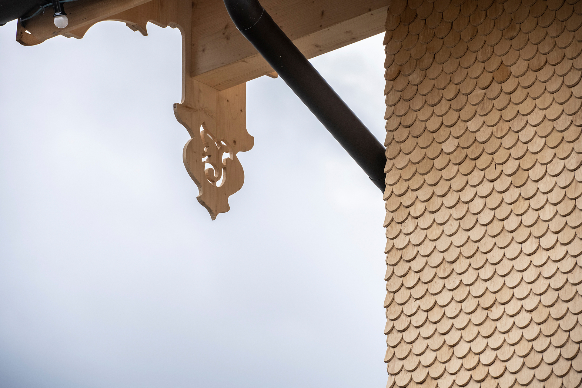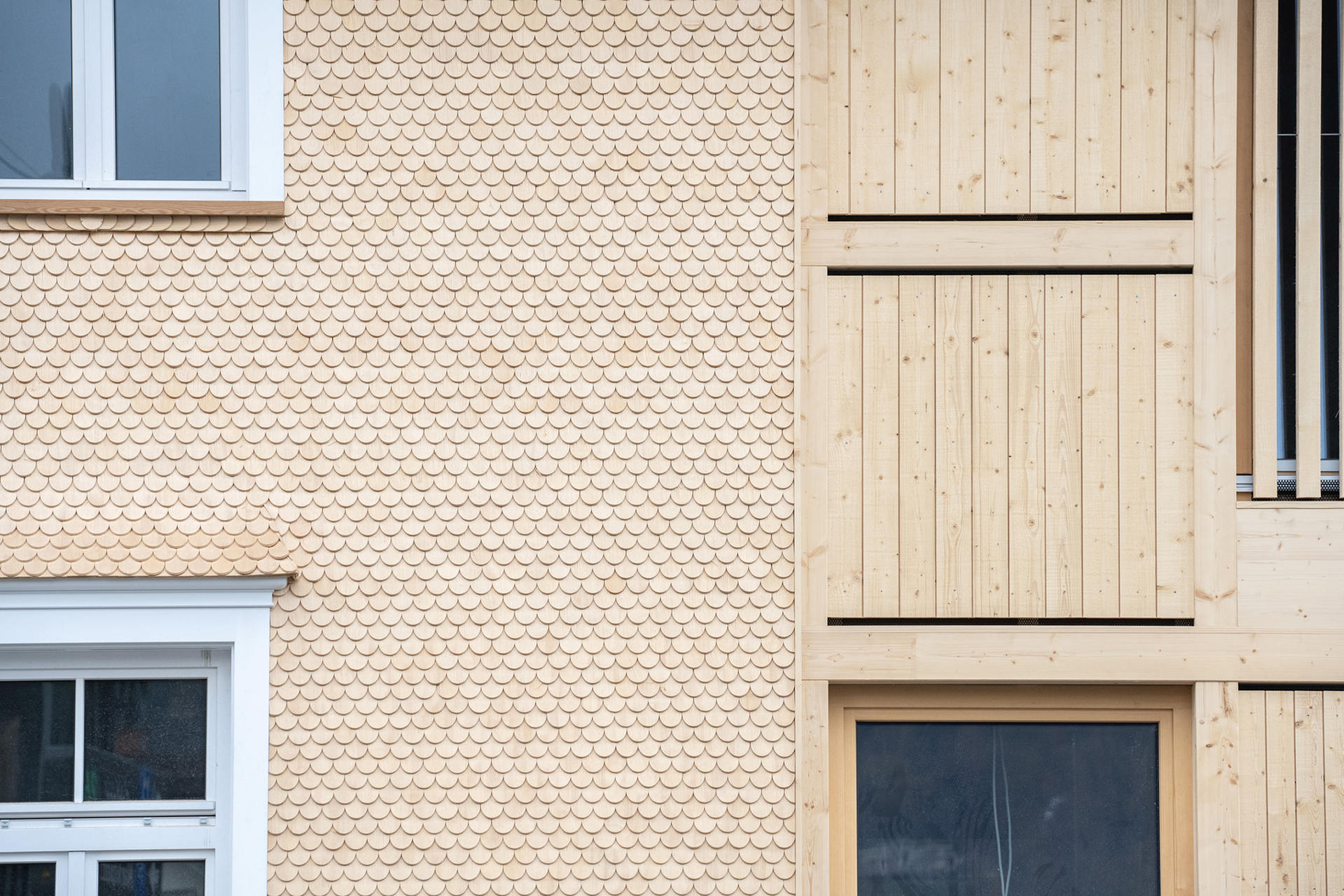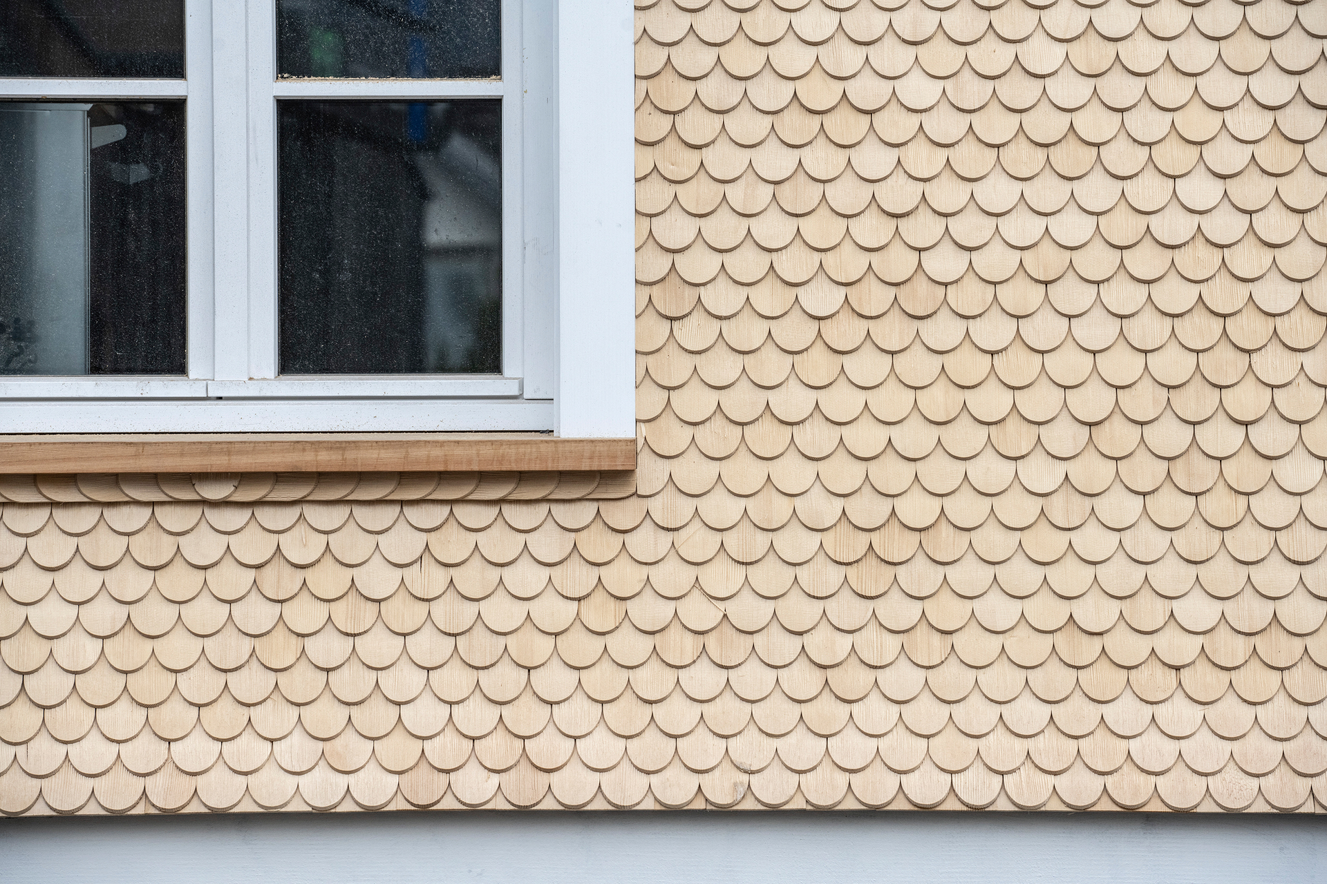 Das Projekt an der Ecke Kellhofstraße/Kreuzstraße verbindet Altes mit Neuem, Traditionen und Moderne. Dem Projektbetreiber sind die wertschätzende Integration des Bestands, die kontextbezogene Umsetzung und der nachhaltige Städtebau besondere Anliegen, die sich im architektonischen Entwurf widerspiegeln. Das Bestandsgebäude wurde teilweise als Holzbau, teilweise in Massivbauweise renoviert bzw. neu errichtet. Das alte Schindelkleid des Hauses wurde ausgetauscht, der baufällige Stadel in Holzmassivbauweise neu errichtet und die Fassade mit einem zeitgemäßen Holzschirm transformiert. Die ostseitige Ansicht des Hauses ist akzentuiert durch die Wiederherstellung der profilierten Opferbretter sowie das Beiwerk am Dachstuhl, das sich als Schmuckstück des Hauses nach außen präsentiert.