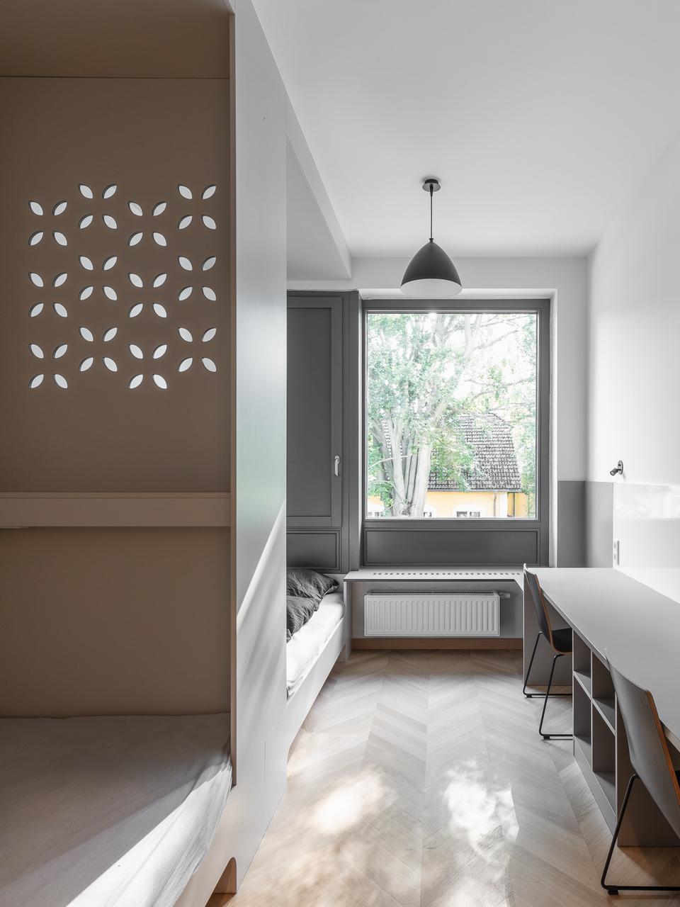 Die Wohneinheiten sind so organisiert, dass eine, entsprechend der Schulleitung gewünschte stockweise Geschlechtertrennung leicht erfolgen kann.