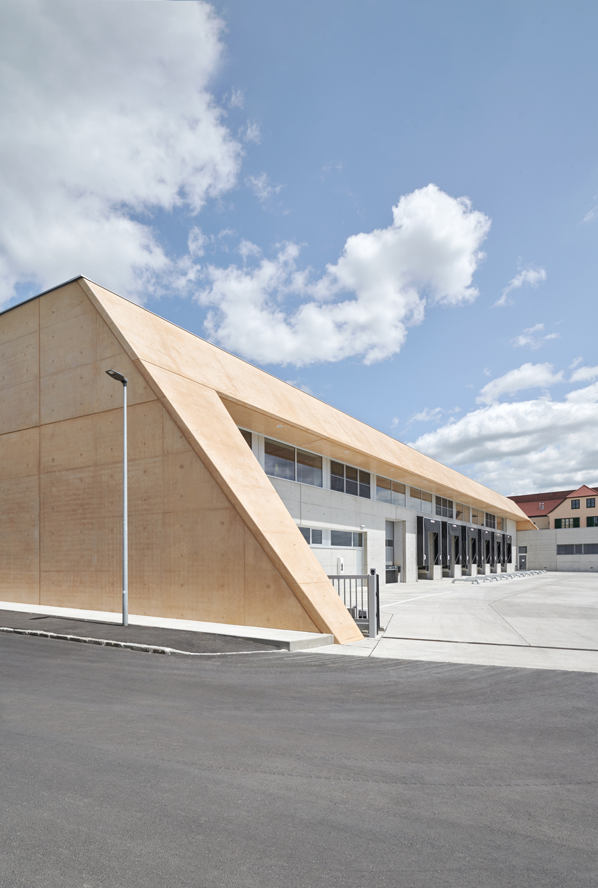 Dank einer Recyclinganlage vor Ort fand der abgebrochene Beton im Unterbau erneut Verwendung. Oberirdisch überspannen mächtige Träger aus Brettschichtholz die beeindruckenden Dimensionen der neuen Hallen, die in ein Betonfassadenkleid in den Farben der Lösshänge gehüllt sind. Konstruiert ist es aus 24 Zentimeter starken vorgehängten Ortbetonscheiben.