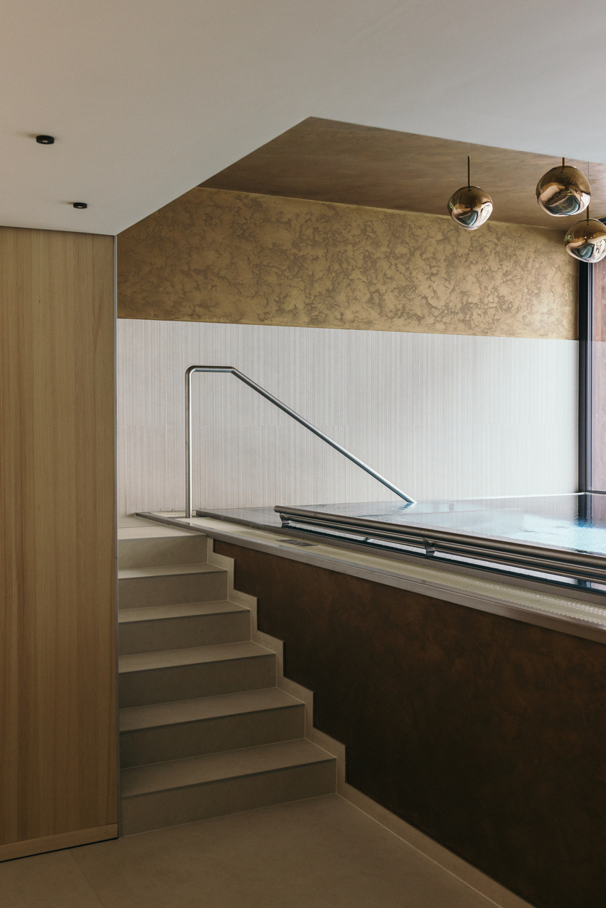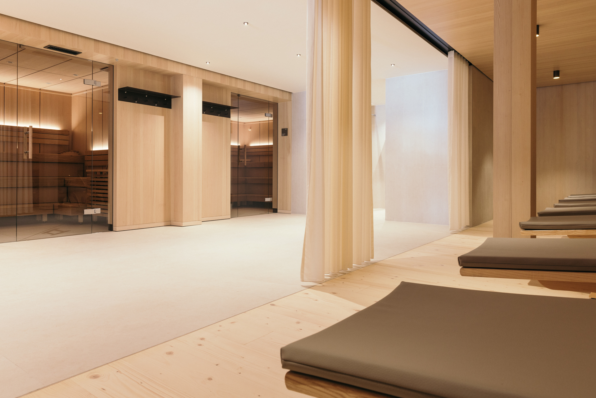 Zum Raumprogramm gehören Fitnessstudios und ein Mehrzweckraum, Saunen und Dampfbad mit den dazugehörigen Ruheräumen, Massagezimmer und der Pool.