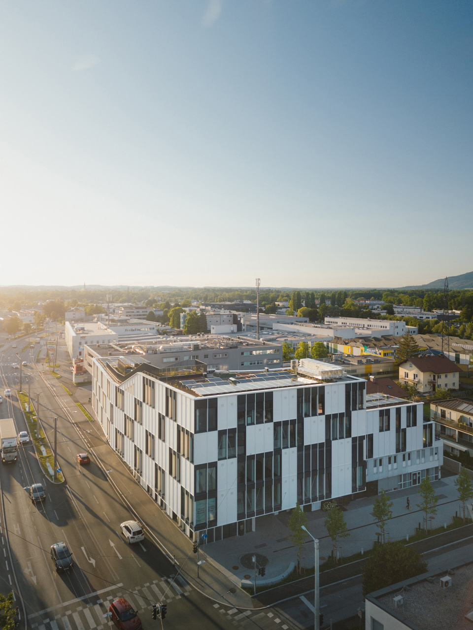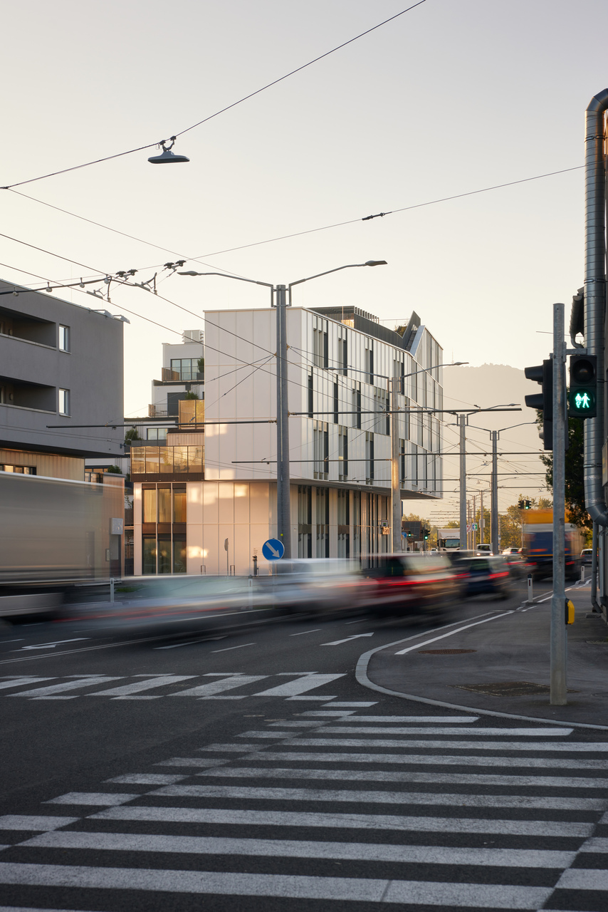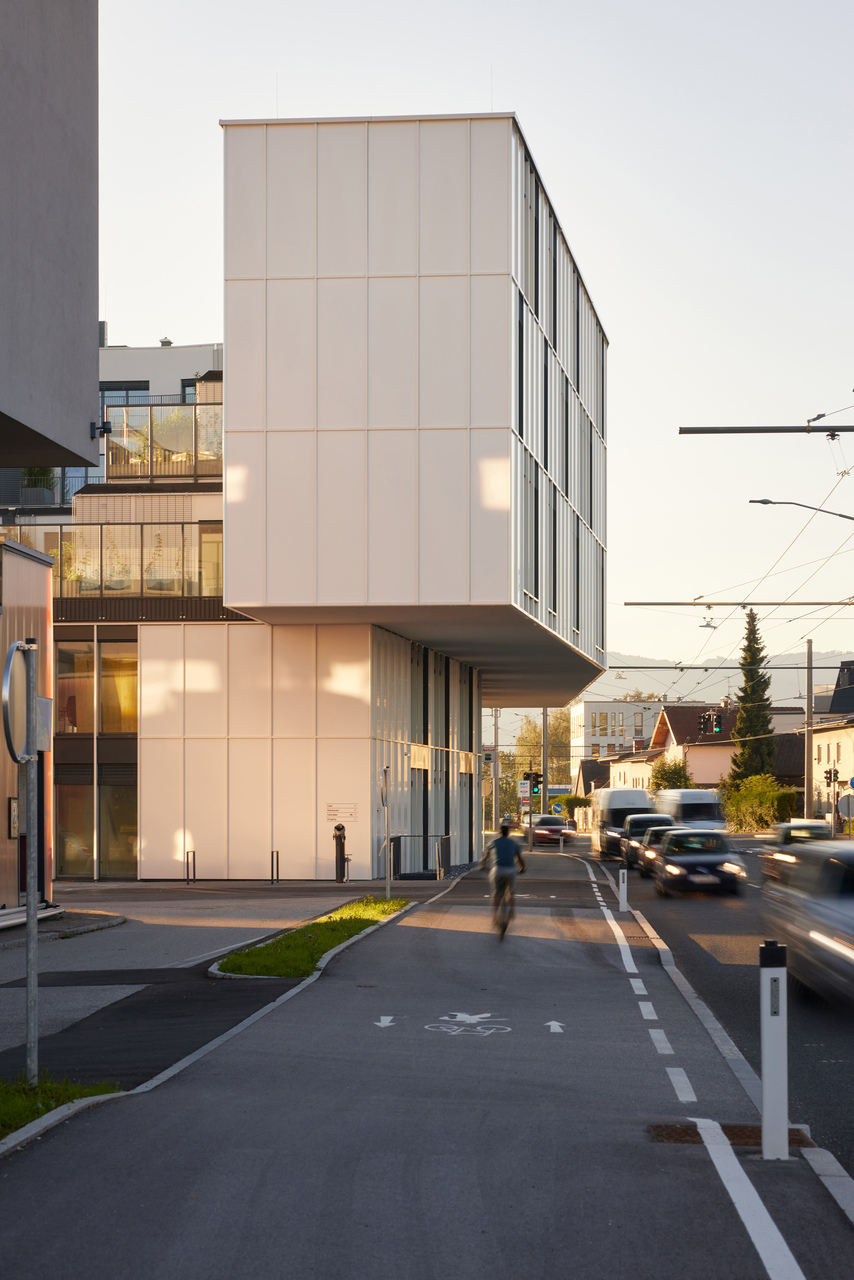 Das Gesamtprojekt ist als multifunktionales Stadthaus konzipiert, das mehrere Büroeinheiten, Geschäftslokale sowie 34 Wohnungen beinhaltet. Für letztere bedurfte es eines Nachweises der Eignung für Wohnflächen, um eine Einzelbewilligung für Wohnraum im Gewerbegebiet zu erhalten. Sowohl die hohe Nutzungsdichte als auch der Schall- und Immissionsschutz waren zu berücksichtigen.