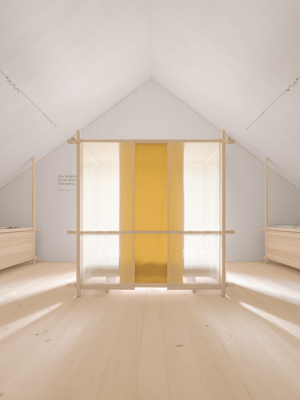 In bester barocker Baumeistertradition erfolgten Planung und Umsetzung in enger Abstimmung zwischen Architektur und Handwerk. Ein zeitgemäßer vorgefertigter Holzbau ergänzt den historischen Strickbau, die differenzierte Fassadengestaltung verweist in ihrer Gestaltung auf die Besonderheit der Nutzung. Im Innenraum bilden weiß gekalktes Holztäfer an den Wänden, massive Fichtendielen am Boden sowie Mobiliar aus Esche den einfachen aber stimmungsvollen Rahmen für die vielfältigen historischen Exponate. Im spannungsreichen Dialog aus Alt und Neu entsteht ein sinnstiftendes Ganzes. (Text: Architekten, bearbeitet)