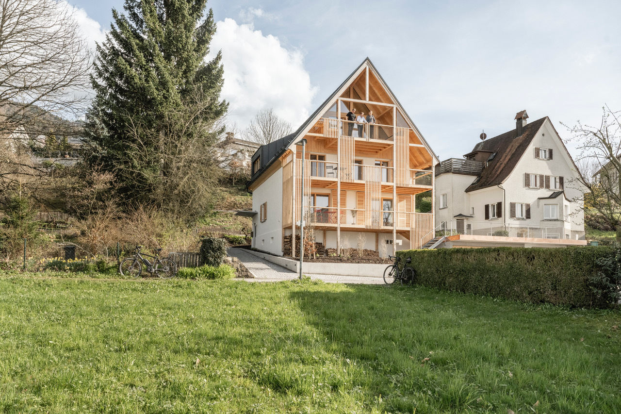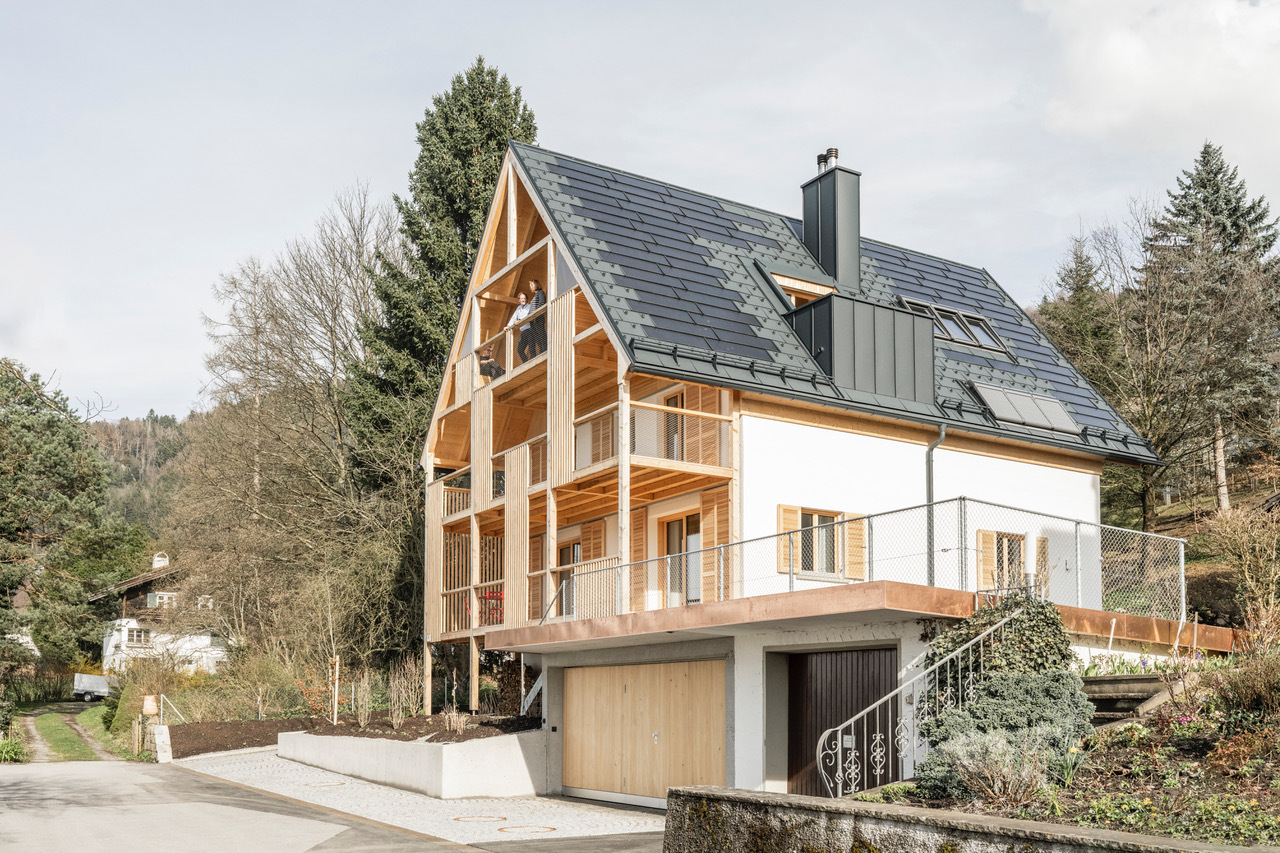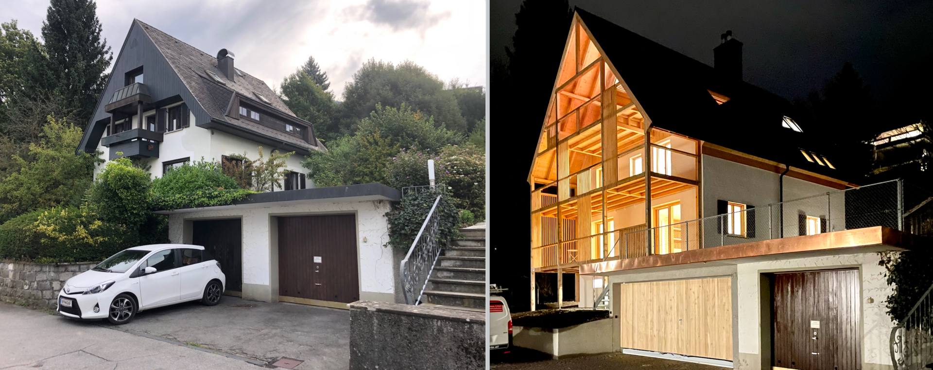 In den 1970er Jahren wurde das typische Siedlerhaus um einen klobigen, dunkelbraunen Vorbau mit Balkon und eine Garage erweitert. Trotz dieser massiven Veränderung entschieden sich Bauherr und Architekten für einen Umbau. Der rückseitige Haupteingang war nur über mehrere Stufen und Podeste am Zwischengeschoß zu erreichen, die kleinen Zimmer im Dachgeschoss hatten keine Außenräume. Die Straßen- ist in den oberen Geschossen auch die Seeseite: vom dortigen Bodenseeblick war kaum etwas zu spüren.