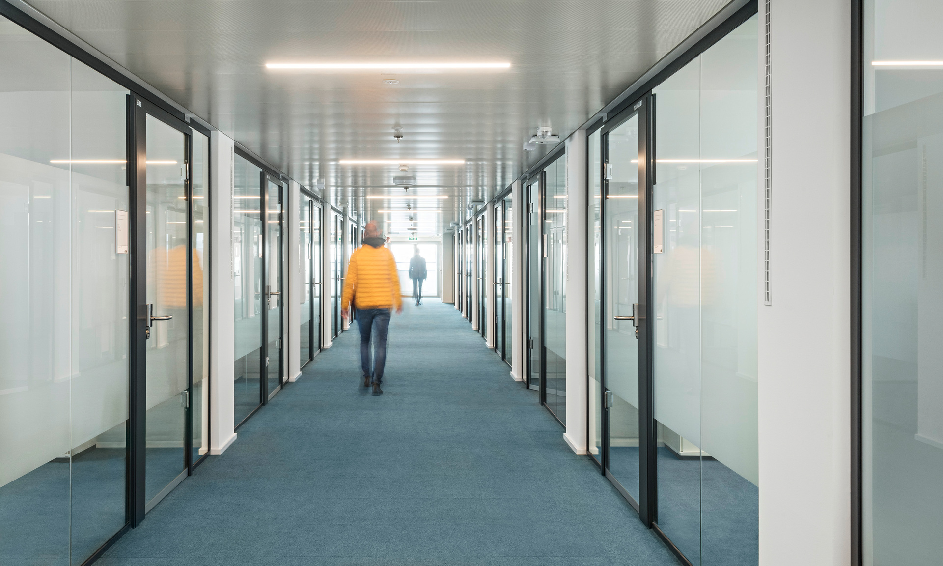 Im Rahmen der statischen und geometrischen Zwänge entstand eine völlig neue Struktur, die größtmögliche Flexibilität und Effizienz in den Bestand bringt; so etwa im Seminarzentrum im Erdgeschoss, das sich durch mobile Faltwände flexibel einteilen lässt und bis zu hundert Personen fasst.