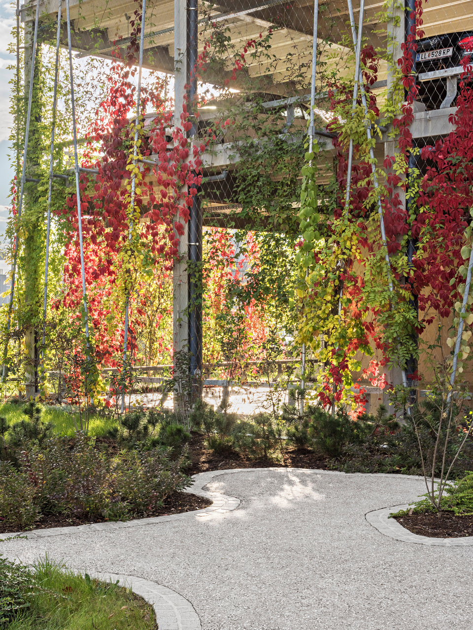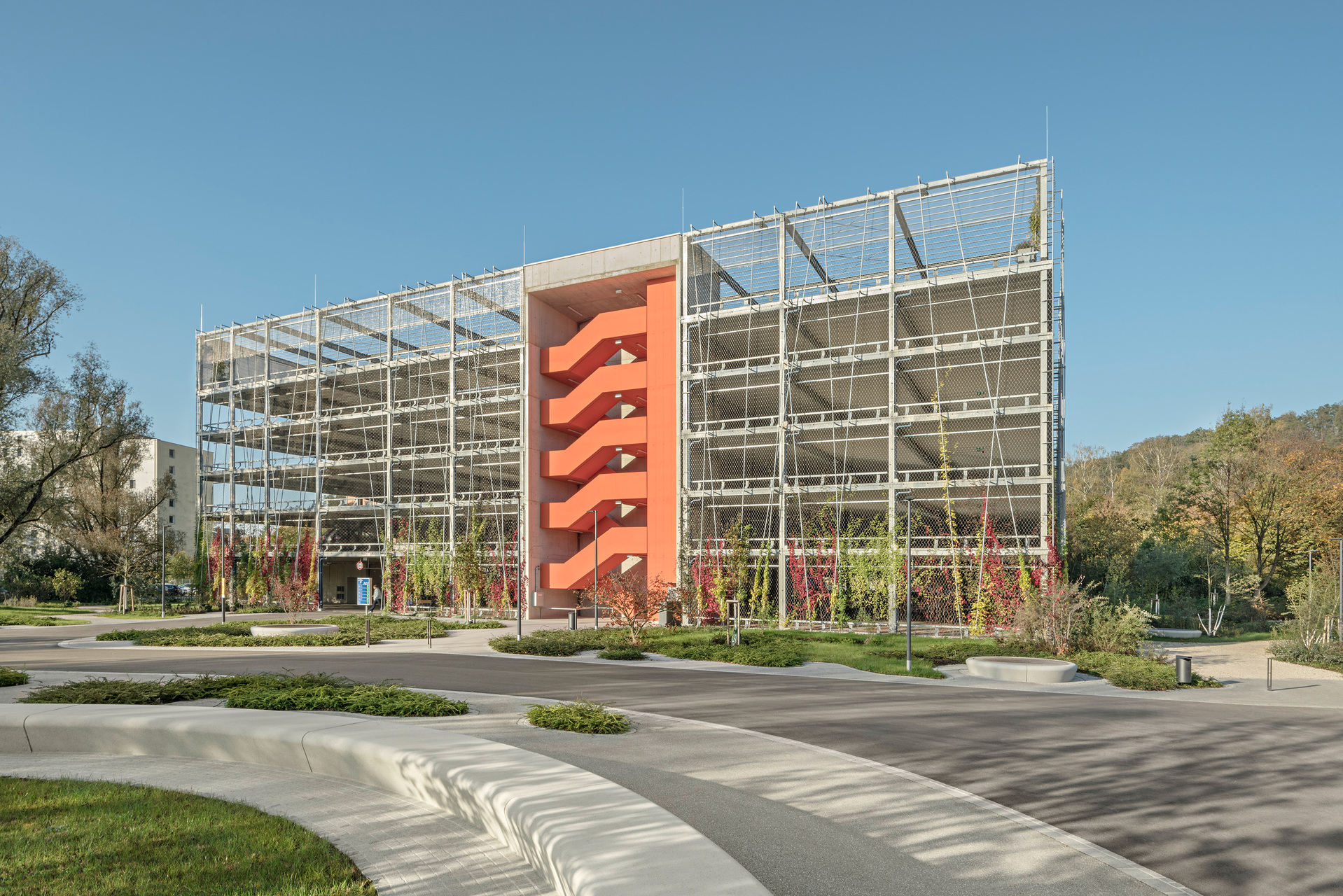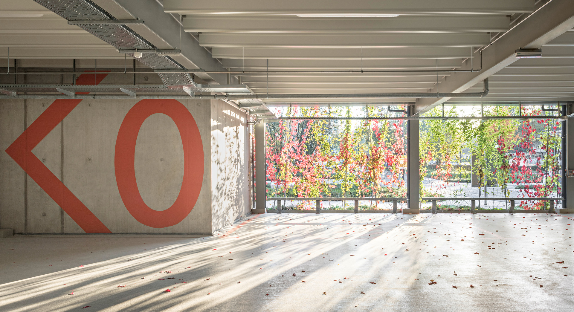 Durch eine erhöhte Raumhöhe im Erdgeschoss und die ausgelegte Tragfähigkeit des obersten Parkdecks wurde bereits an zukünftige Umnutzungen gedacht. Temporäre oder langfristige alternative Nutzungen wie Veranstaltungen sind möglich und können durch technische Anpassungen ergänzt werden. (Text: Architekt:innen, bearbeitet)