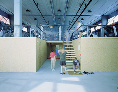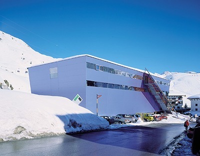 Das neue Gebäude, es beherbergt eine Sporthalle mit Fitness - Center, eine Bar und Büros für ÖSV-Mitarbeiter, steht im Zentrum der Ortschaft St. Christoph und ist von St. Anton kommend sehr gut einsichtig. Das Bauwerk ist im örtlichen Gefüge so platziert, dass die Umlenkung des Straßenknickes räumlich gefasst und verstärkt wird. Auch vom Arlbergpass kommend, ist das neue Gebäude ein wichtiges Orientierungselement im Dorfgefüge. Die Südostecke ist wie eine urbane Loggia zum Ort orientiert.