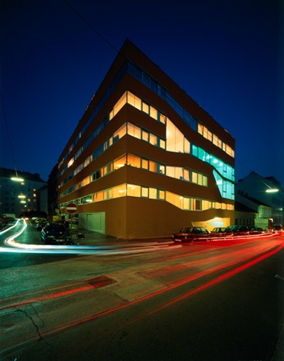 Eine Gruppe unzufriedener Wohnungssuchender war Anfang der 1990er Jahre angetreten, um mit Hilfe der Architekten und Architektinnen des Baukünstlerkollektivs BKK-2 (Ch. Lammerhuber, A. Linemayr, F. Sumnitsch, F. Wallnöfer, J. Winter und E. Wurster) eine neue Art der Wohnform auf dem Wiener Wohnungsmarkt zu plazieren. Man gründete den „Verein für integrative Lebensgestaltung“ und wollte das leerstehende Fabriksgebäude im dicht verbauten Gebiet zu einem Wohnbau umfunktionieren. Die Bausubstanz war allerdings zu schlecht, und so wurde 1996 ein Neubau in sattem Orange fertiggestellt, der sich nicht nur durch diese Farbgebung exzentrisch zeigt, sondern der auch in seinem sozial ausgerichteten Raumprogramm links der Mitte anzusiedeln ist: In bester Tradition des Wiener kommunalen Wohnbaus der Zwischenkriegszeit wurden nebst Wohnungen gemeinschaftlich zu nutzende Zusatzeinrichtungen wie Kindergarten, Hallenbad, Veranstaltungssaal und Café errichtet, deren Betrieb gemeinsam und durch Vermietung finanziert wird. Gleichzeitig wollte man durch diese Infrastruktur ein neues kulturelles Zentrum schaffen und sich trotz unangepaßter Architektur im Grätzel integrieren. Die Intention: eine Belebung des Viertels, ging auf.