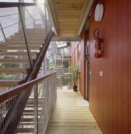 Die Grundrisstypologie wurde sehr ökonomisch organisiert und bietet dennoch ausreichenden Platz für persönlichen Freiraum. Allen Erdgeschosswohnungen und Maisonetten sind vorgelagerte Gärten und Freiflächen zugeordnet. Die Kellerersatzräume in Form von kleinen Gartenhäuschen schirmen die Wohnungen zur Gasse hin ab. Durch die exakte Planung und das besondere Gespür im Umgang mit dieser Bauaufgabe entstand ein Musterbeispiel an Nachhaltigkeit und Wiederbelebung eines totgeglaubten Areals in der Steiermark. (18.06.2001)