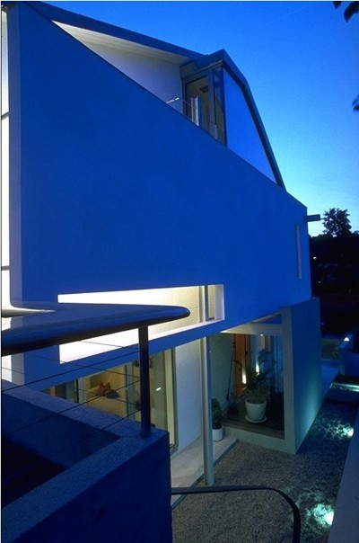 Durch den Zubau wurde das bestehende Haus auf einer Seite geöffnet und um die Zusatzfunktionen wie Erschließung, zusätzliche Aussenbereiche und Sonnenschutz erweitert. Eine einläufige Stiege wurde zwischen dem Esszimmer und der Mitte des Dachbodens platziert. Vor der Fassade „schwebt“ eine weiße Scheibe als Begrenzung zur Stiege, die sowohl unten als auch oben als Balkon ausläuft. Im Grundriss des Hauptgeschosses wurden auf der Gartenebene zusätzliche Öffnungen mit raumhohen Schiebetüren eingebaut. Dadurch entsteht ein grosszügiges Raumgefühl und flexiblere Raumeinteilungen.