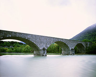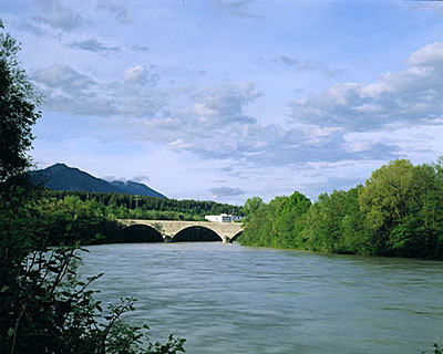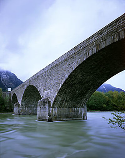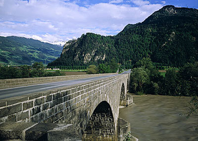 Die Mauerung erfolgte in „Ötztaler Gneis“ aus einem Steinbruch in Längenfeld, wo die einzelnen Quader bereits roh zubereitet wurden. Um die Brücke einheitlich erscheinen zu lassen, wurden die Fußgängerwege in Anpassung an die massive Brüstungsmauer ursprünglich mit großen Steinplatten gepflastert.