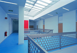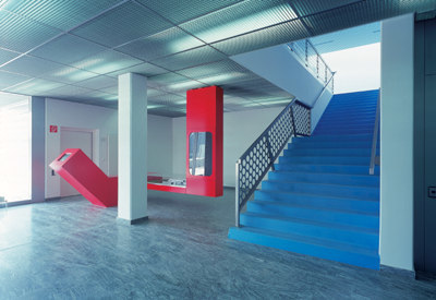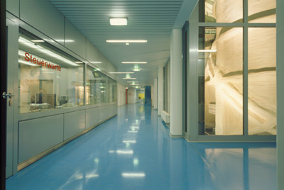 Die Architekten ordneten die technischen Einheiten auf dem schmalen Bauplatz zu einer linearen Struktur, offen für Veränderungen, die noch während der Planung und Montage zu erwarten waren. In Kooperation mit internationalen Spezialplanern gab es zweigestalterische Hauptthemen: die räumliche Zuordnung der autonomen, hochdeterminierten Einzelbereiche zu organisieren und die Zwischenräume zwischen den Anlageteilen, die „Schluffe“ zwischen den riesigen Windkanalröhren und den Gebäudehüllen zu nutzen für Wegführungen und Brücken, für Ein- und Durchblicke in Verbindung mit Foyers und Büroflächen. Ein anderer Aspekt betraf das Design der Bauhülle als homogene, silberglänzende Form, die alle Einzelfunktionen einem großen Ganzen unterordnet und die Dimension des Projekts in Szene setzt. Signalhafte Farbakzente und das Spiel zwischen „harten“ Technikzonen und „weichen“ Humanzonen prägen das Innere. (Text: Otto Kapfinger)