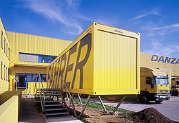 Das neue Erscheinungsbild des LKW Terminals hat seine identitätsstifende Wirkung auch betriebsintern nicht verfehlt: seit dem Umbau pflegen die Lagerarbeiter ihren Dienst in gelben Arbeitsanzügen zu verrichten. (Text: Gabriele Kaiser)