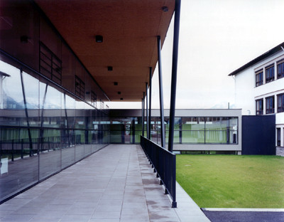Man betritt das Gebäude am Scheitelpunkt des Hanggrundstücks und gewinnt von der exponierten Position in der lichtdurchfluteten Halle sofort einen ungeahnten Einblick in die Tiefe des Raums. Dieses durchgängige System der Durchblicke und Einsichten verleiht der weitläufigen Anlage eine heitere und offene Grundstimmung, die - wenn man den Raum zum Programm erklärt - als ein vorbildliches Beispiel einer antiautoritären Lehrgesinnung bezeichnet werden könnte. (Text: Gabriele Kaiser, 01.02.2002)