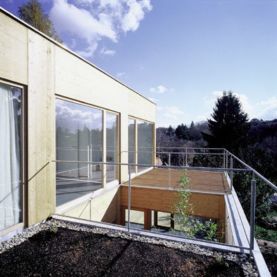 Die äußere Hülle besteht aus einfachen sägerauen Lärchenbrettern. Dort, wo Einschnitte in die Großform stattfanden, also im Bereich des Innenhofes und den Dachgeschoßterrassen, kamen glatte Holzplatten zum Einsatz. Schließlich sind diese Außenräume als Aufenthaltsräume zu sehen und verlangen nach einer feineren Materialsprache. Wiewohl auf die individuellen Bedürfnisse der Bauherren zugeschnitten, könnte dieses Haus auch für andere Lebensentwürfe eine taugliche Wohnumgebung bieten.