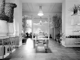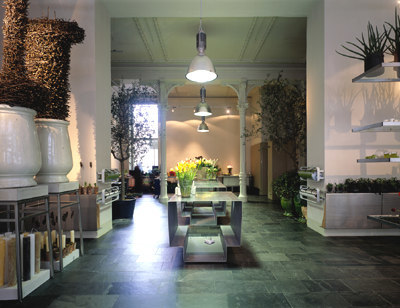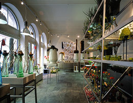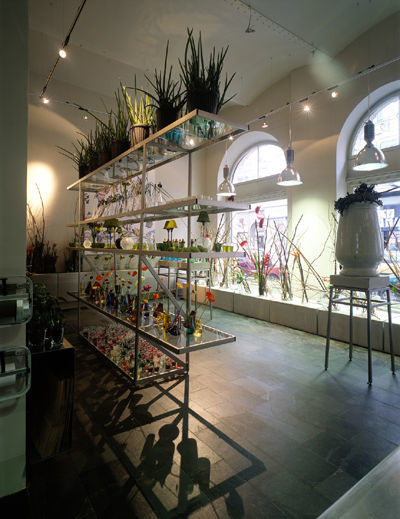 Der Standort der blumenkräftigen Basisstation ist synergetisch, Stadt und Lokal stehen in sich positiv bestärkender Wechselwirkung. Die Schleifmühlgasse in Wieden gehört zum Freihausviertel; mit seinen Bars, Restaurants und Kunstgalerien, durch die Nähe zu Generali Foundation, Technischer Universität, Kunsthalle und Naschmarkt ist es zu einer der virulentesten Zonen Wiens geworden - und die Tendenz zur urbanen Diversifikation ist hier noch lange nicht abgeschlossen. Die andere Erdgeschoßhälfte nimmt kongenial das von Jabornegg & Palffy gestaltete Bekleidungsgeschäft Jutta Pregenzer ein. Zusammen bilden sie einen „magnetischen“ Sockel, der dem reich ornamentierten Palais endlich gerecht wird und den Ort einprägsam macht.