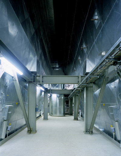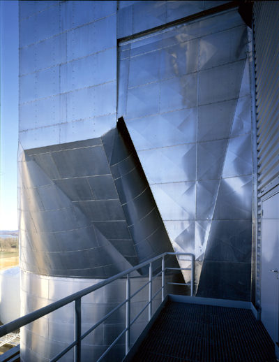 The design process of this project reverses the usual architectural process: already existing structures and forms had to be integrated after the fact. The architect says of his project: „An industrial object of this size involuntarily defines its environment, its utilitarian purpose notwithstanding. This, along with the physical and technical restrictions forms the basis of the formal possibilities.“