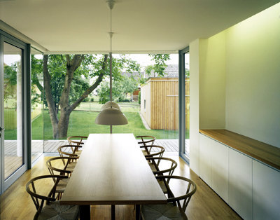 Jede zusätzliche Applikation müsste schon von höchstem künstlerischen Wert sein, um in dieser Symphonie architektonischer Elemente bestehen zu können. Aber das Bedürfnis, noch etwas hinzufügen zu müssen hat ohnedies niemand. Schließlich vermittelt das Haus bei aller Strenge im Detail ein Gefühl von großer Freiheit im Bewohnen. Für Abwechslung sorgen die Familie und ihre Besucher selbst und auch der Wechsel der Jahreszeiten, der durch den starken Bezug zum Obstgarten stets im Haus präsent ist.