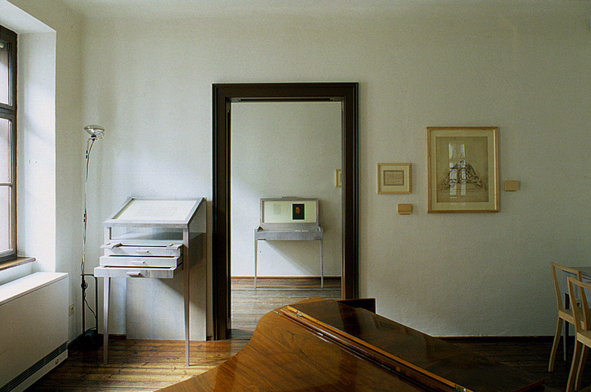 Hier hakt nun die Gestaltung des Ausstellungsmobiliars ein: Der Besucher darf - was an originalen Erinnerungsstücken aus konservatorischen Gründen verboten bleiben muß - Laden herausziehen, Klappen öffnen und schließen sowie Tasten drücken. Damit wird dem Betätigungsdrang und der Neugier ein Feld geöffnet. Bei dieser kontextuellen Bedeutung der Möbel wird es nicht erstaunen, daß das auf der Biennale ausgestellte Stück etwas verloren wirkte. Obwohl Elsa Prochazka mit ihrem Konzept sehr konkret auf Besucherwünsche nach näherem Zugang auch zur Person des Musikers eingeht, verbietet sie sich das Schwelgen in Klischeevorstellungen und erschwert in harmloser Abstufung den Zugang zur Information.