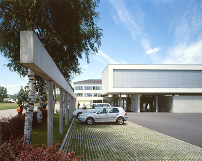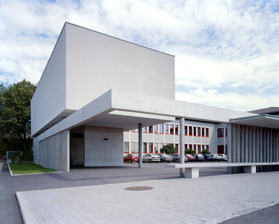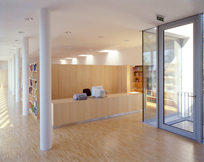 Die Südseite der lichterfüllten Einraumbibliothek (mässig hohe Regale skandieren die geräumige Nutzfläche) wurde vollflächig verglast, fragile Sonnenschutzlamellen betonen die „dünne Haut“, der im Norden und Westen eine betont massive geschlossene Fassade gegenübersteht. Der Architekt konnte mit dem neuen Baukörper gewisse konzeptuelle Mängel des Bestands beheben, die Schliessung allfälliger Wissenslücken bleibt jedoch dem Lehrpersonal und den Bibliothekaren überlassen... (Text: Gabriele Kaiser)