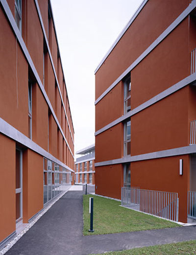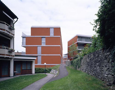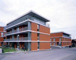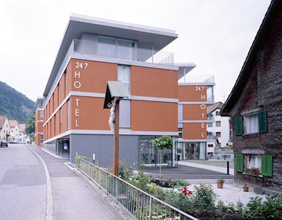 Das integrierte Hotel (30 Hotelzimmer mit 20 bis 34 m²) mit Sauna und Dampfbad ist mit eigener Erschließung und separater Anbindung an die zweigeschossige Tiefgarage vom Wohntrakt infrastrukturell entkoppelt, hat aber für die gesamte Anlage Mehrwert zu bieten, z.B. indem den Hausbewohnern auch der Wellnessbereich des Hotels zur Verfügung steht oder wenn Gäste (oder Geschäftspartner) gewissermassen in unmittelbarer Nachbarschaft Quartier beziehen können. Das Projekt wurde mit dem Preis „Menschengerechtes Bauen 2002“ ausgezeichnet. (Text: Gabriele Kaiser)