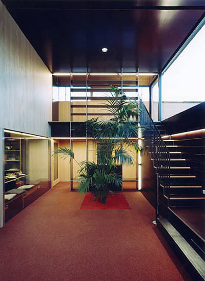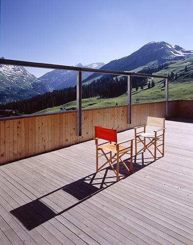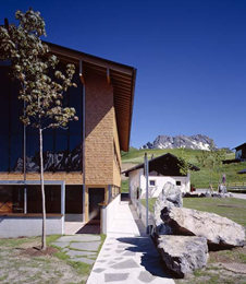 Auch bei der Einrichtung wurde das Materialkonzept konsequent weitergeführt. So sind die Türen, die Kücheneinrichtung, die Bodenbeläge und Teile der Wandverkleidungen der Sanitärräume sowie die Dachuntersicht mit finnischen Mehrschicht-Sperrholzplatten ausgeführt. Die zusätzlichen Gemeinschaftsräume wie Sauna, Bar und Wintergarten schaffen eine entspannte Atmosphäre und laden die Gäste zum „relaxen“ ein. (30.04.2001)