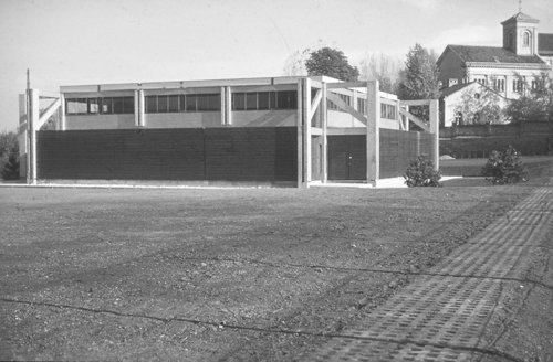 Aus diesen Gründen wurde die ursprüngliche Idee, das Modell Siemensstraße öfter zu bauen, nicht weiter verfolgt, als es kurz darauf Bedarf an einer weiteren provisorischen Kirche gab. Uhl prüfte verschiedene Konstruktionsarten auf ihren Einsatz als demontable Struktur und kam letztendlich auf eine vorgefertigte Holzkonstruktion. Diese bestand aus vier, ein Quadrat von 15 Metern Seitenlänge aufspannenden Holzträgern auf Stützen, die in sich aus zwei parallel verlaufenden Leimbindern (Hetzerbindern) bestanden. Diese Träger gaben zwei unterschiedliche Höhen vor: Die Oberkante definierte die Höhe des mittleren Teils (5,0 m), die Unterkante (2,5 m) die Höhe der Seitenteile. Ein umlaufendes Oberlicht zwischen Haupt- u. Sekundärbalken des Trägers leuchtet den Raum hell aus. Diese Konstruktionsart ermöglichte einen stützenfreien Raum, der funktional frei disponierbar und auch prinzipiell erweiterbar war. In diese Tragstruktur zog man im mittleren Bereich zwei zusätzliche Träger ein, in die Deckenelemente mit 2,5 mal 5,0 Metern gelegt wurden. Sowohl die Träger als auch die Decken- und Wandelemente waren vorgefertigt. Die Bauzeit vor Ort konnte so auf sieben Wochen reduziert werden – 1967 ein absolutes Novum.