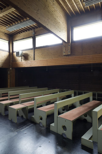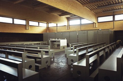Die Fugen zwischen den Deckenelementen des Dachs wurden mit einem Vakuumschlauch und einem Fugenband abgedichtet, ein Konstruktionsdetail, welches den dauerhaften Anforderungen im Flachdachbereich nicht Stand hielt. Dem flachen Dach wurde später (ohne Rücksprache mit Uhl) ein geneigtes aufgesetzt und der gesamte obere Bereich inklusive Holzträger verblecht. Auch im Inneren kam es zu einigen Veränderungen: Die Ausrichtung wurde gedreht, die ursprünglich auf drei Seiten um den Altar angeordneten Bänke wurden in eine frontale Anordnung umgestellt und die ehemals frei im Raum stehenden Einbauten in die Umgänge verbannt. Veränderbarkeit ist in Uhls Räumen immer bereits im Entwurf mitgedacht. Dass sich diese Veränderungen dann auch radikal gegen die architektonische und programmatische Grundhaltung wenden können, ist die – nicht immer einfach zu ertragende – Konsequenz.
