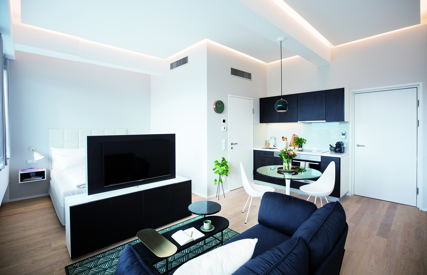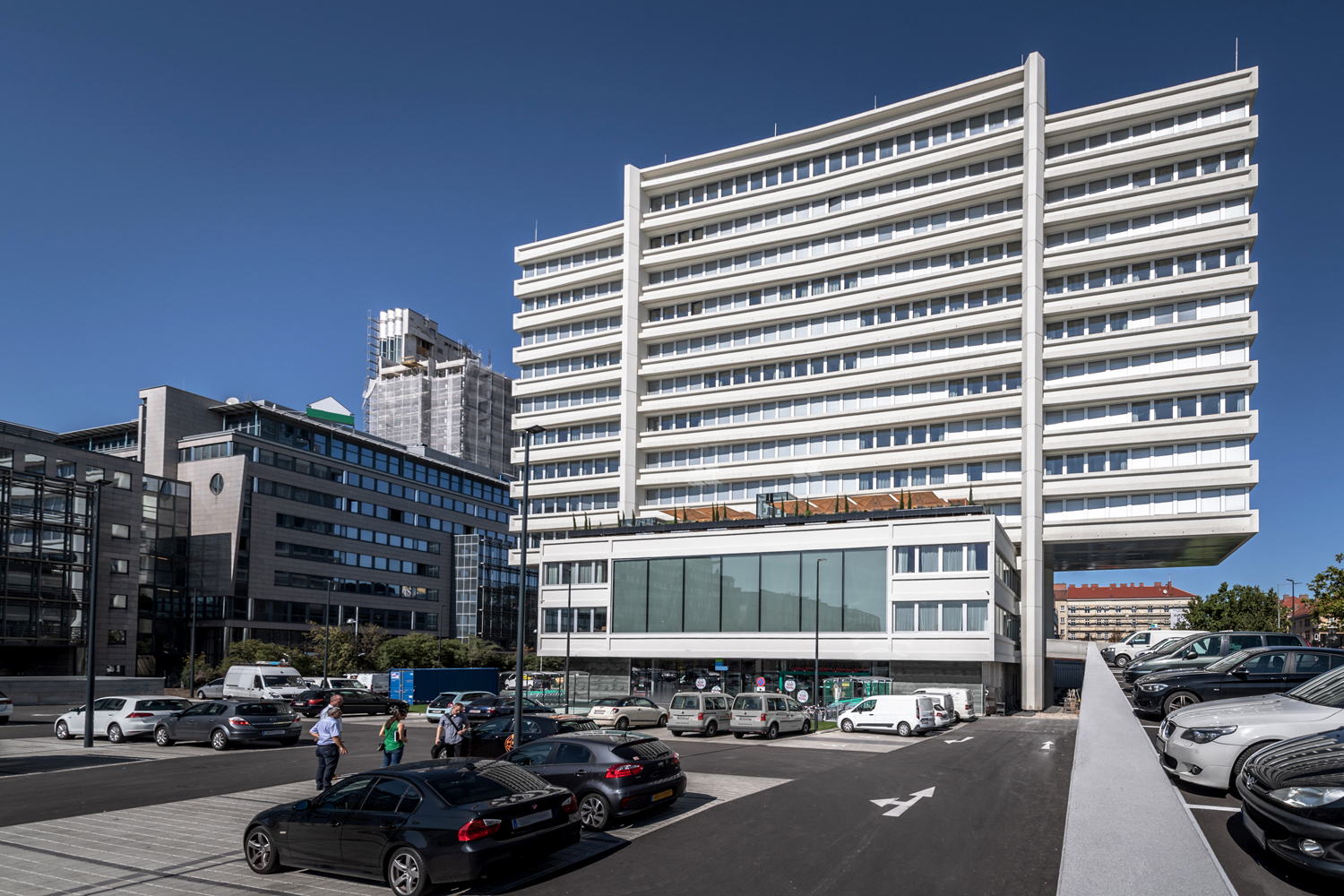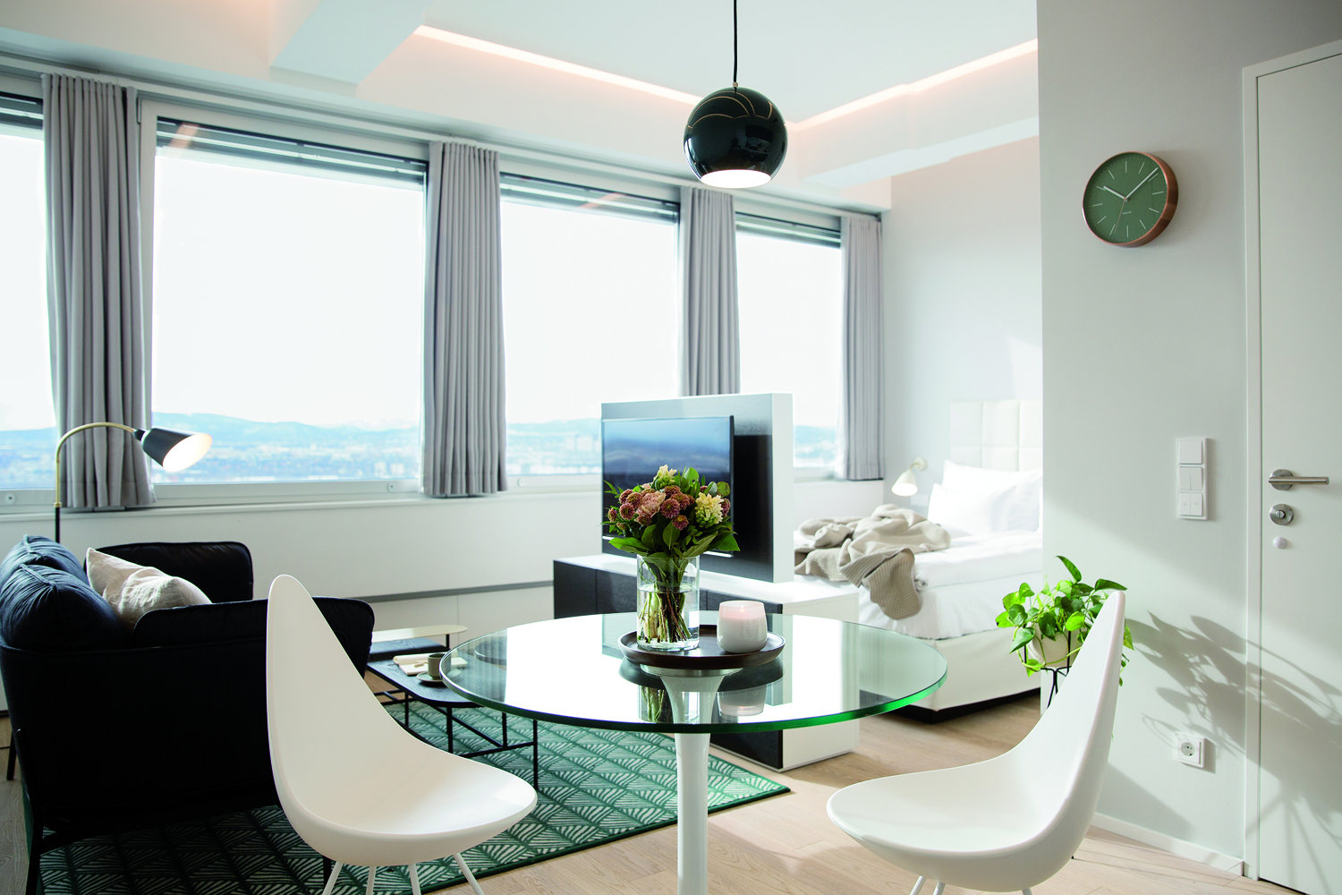 Diese offene Struktur bot die perfekte Grundlage für unterschiedlichste Ausformulierungen – vom Loft bis hin zum kleinen Apartment wurden alle Möglichkeiten genutzt, um das Gebäude in zeitgemäße Wohnformen zu übertragen. Entstanden ist ein „Vertical Village“ mit Serviced Apartments, Supermärkten, Gastronomie, Fitnesscenter sowie Parkplätzen und künftigem U-Bahn-Anschluss der neuen U2.