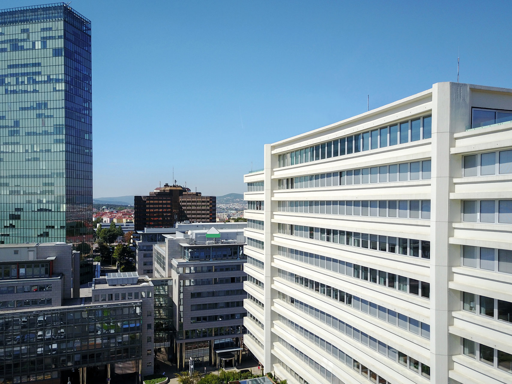 Die Revitalisierung des Gebäudes fand in enger Abstimmung mit dem Bundesdenkmalamt statt – seit 2010 stehen Erschließungskerne und Fassade unter Denkmalschutz. Die Rekonstruktion der Fensterbänder aus Aluminium erfolgte nach Schwanzers Originalplänen. Eine Aufschüttung des Geländes aus einem Umbau in den 90er Jahren vor der südlichen Panoramafensterfront wurde rückgebaut, so dass – wie von Schwanzer gewollt – das freie Schweben des Flachbaus wieder sichtbar gemacht wurde. (Text: Architekten, leicht gekürzt)