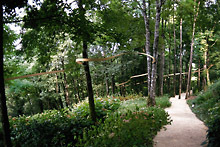 Wie ein erzählerischer Faden zieht sich der Hauptweg durch einen Eichenwald und offene Wiesenflächen den Hang hinauf. Ein Potpourri designerischer Accessoires, vom goldenen Ariadnefaden «Fil d'or» in den Bäumen bis zu grossen Windspielen entlang der «Axe des vents» oder Glöckchen in den Eichen des «Bois sacré», soll die Bedeutung der Garten- und Bildsequenzen unterstreichen.