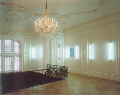Es würde zu weit führen, die vielen kleinen Veränderungen aufzuzählen, die sich gegenüber dem ursprünglichen Konzept auf Wunsch des Bauherren ergeben haben. Da wurden Treppen umgedreht, Räume zusammengefasst und die Cafénutzung zu Lasten der Eingangssituation in den Veranstaltungsraum erweitert. Das alles war wohl möglich, weil die Raumaufteilung im Inneren auf dem Grundriss genauso schematisch erscheint, wie die äußere, auf den ersten Blick so lapidare Betonhülle. Was es wohl nahe gelegt hat, die Räume herumzuschieben wie die Elemente einer Einbauküche. Niemand hätte gewagt, so mit dem Altbau zu verfahren. Dort, wo Ausstellungsflächen, eine Bibliothek und die Räume des Franz-Nabl-Instituts der Universität Graz untergebracht sind, herrscht ein hohes Maß an räumlicher Klarheit. Alles ist um ein imposantes Treppenhaus mit anschließender Empore herum organisiert. Diese Raumform setzt einen Fixpunkt und erzeugt die Aufteilung der jeweiligen Geschosse wie von selbst. Die raumverschlingende Großzügigkeit des feudalen Palais entfaltet eine Kraft, die sich auf den Anbau leider nicht übertragen hat, weil das von den Architekten fein austarierte Gleichgewicht kein Zentrum hatte, aus dem heraus sich alles andere zwanglos ergibt. So hat man beispielsweise die Glasflächen im Terrassenboden, die ein darunter liegendes Foyer belichten sollten, nachträglich mit Folie verklebt, weil der Vorraum mittlerweile dem Veranstaltungssaal zugeschlagen wurde, und dort soll es ja dunkel sein. Wären die Räume ausformulierter gewesen, hätte das nicht passieren können.