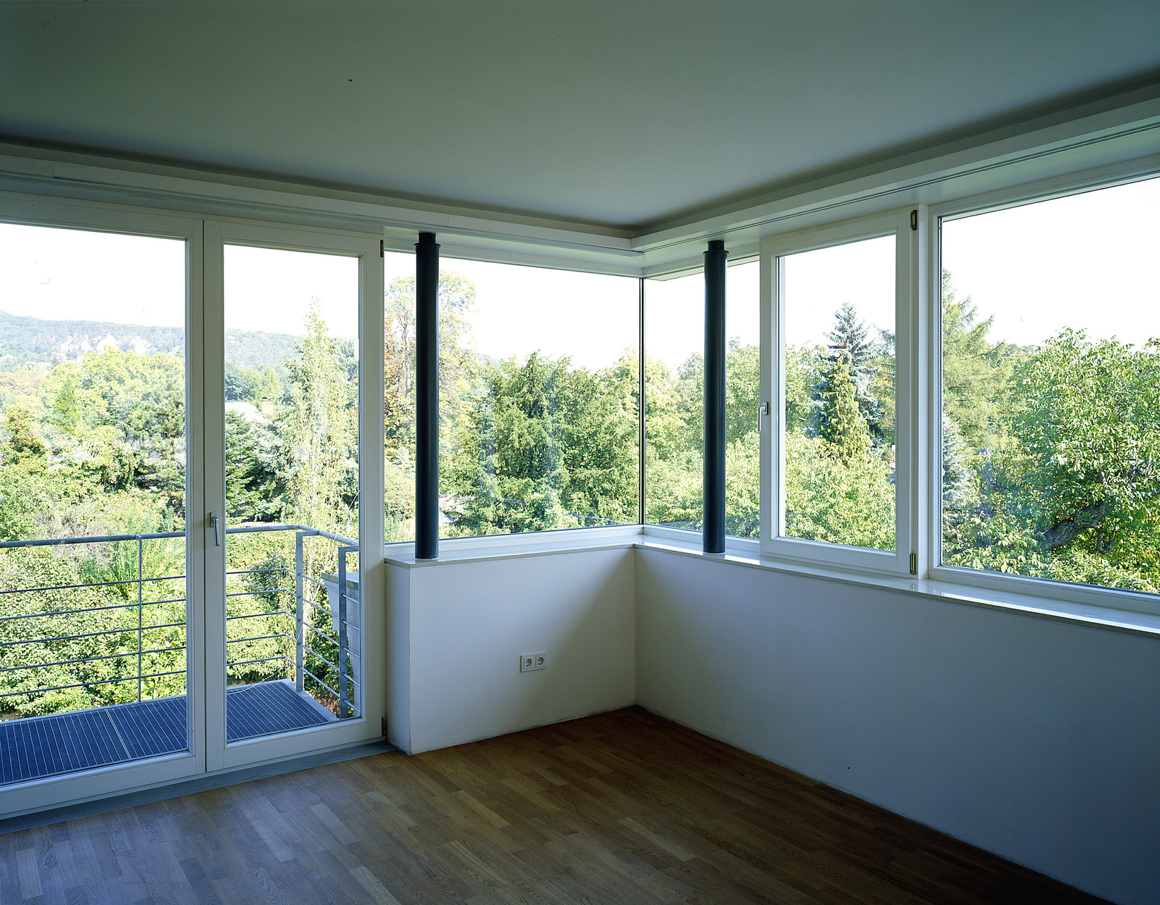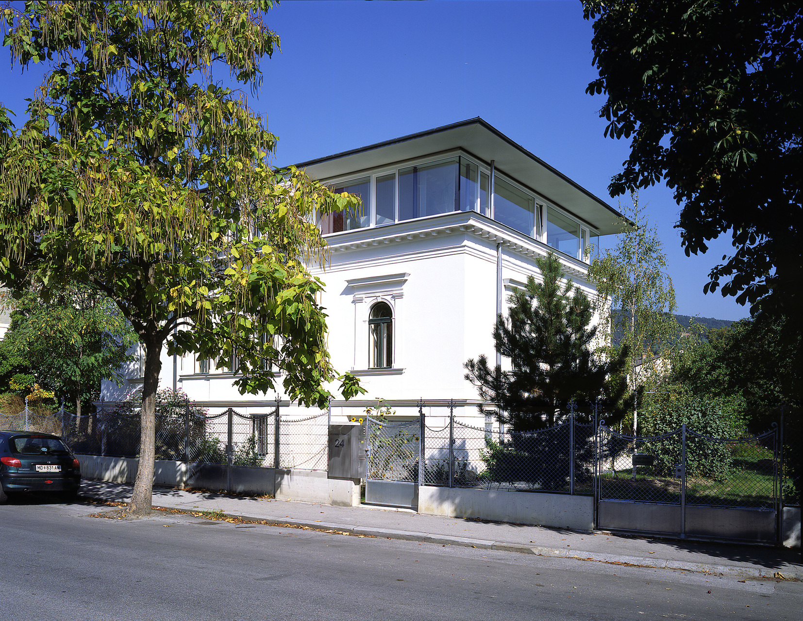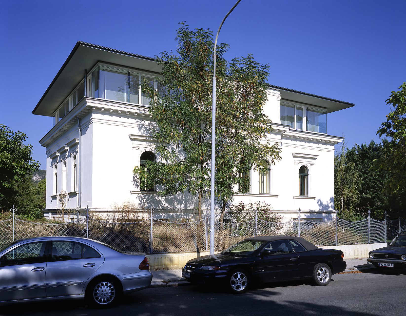 1992 erbte der Bauherr das Haus. Das erste Kind war da, die Villa desolat. Der Keller war schimmlig, die Veranda morsch, Bad, Heizung und Elektroinstallationen fehlten. Trotzdem zog man ein, legte das Haus trocken und baute eine Nasszelle. 1999, das dritte Kind war unterwegs, lernte der Bauherr Alois und Elena Neururer kennen. Er bat sie, sich die Veranda anzusehen. Doch nicht nur sie, auch das Dach war ein Sanierungsfall. Die Architekten schlugen vor, neu aufzustocken, um der Villa endlich die Proportion zu geben, die sie zum Palazzo adelt. Zur Minderung der Finanzlast wurde die Stiege durch Glaswände abgetrennt. So ist das Dachgeschoß separat vermietbar, ein gartenseitig vorgesetzter Balkon und das transparente Entree lassen Helligkeit aus dem Innern ins Treppenhaus fluten.