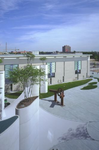 Der inszenatorische Wille, der auch andere Gebäude von Axel Schultes wie das Bonner Kunstmuseum und das Krematorium in Berlin-Treptow kennzeichnet, die flächigen Wände und Raumlandschaften bleiben beim Kanzleramt merkwürdig unbeseelt. Nur einmal ist der Architekt der eigenen Dialektik abhold und macht die Probe aufs Exempel: Im «Infosaal» tritt der Kanzler nicht einfach an zur Pressekonferenz, sondern schreitet, als käme er von einer rückwärts gelegenen Kommandobrücke her, auf einem Steg über den Köpfen der Journalisten nach vorn, verschwindet hinter einer vorgehängten Wand mit unsichtbarer Treppe und erscheint unmittelbar vor der versammelten Zuhörerschaft wieder. Dieses Staatstheater hat dem Gebäude schon zu dem zweifelhaften Kompliment des ersten «Bauwerks der Mediendemokratie» verholfen. Man sollte es nicht zu ernst nehmen und dem Architekten, dem die «deutsche Krankheit Angst» noch heute im Nacken sitzt, wenn er durchs Gebäude führt, das kleine Schauspiel gönnen.