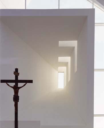 Neben der lichtdurchfluteten Kirche beinhaltet der Komplex ein viergeschoßiges Gemeindezentrum, das im Norden an den hohen Kirchenraum anschließt. Es ist erstaunlich, wie pur sich das Innere auch nach einigen Jahren Gebrauch präsentiert. Keine Spur von Gummibäumen und Teppichen, mit denen in modernen Kirchen oft hilflos wirkende Versuche zur Vergemütlichung eines kargen Raumes unternommen werden. Meier gelang trotz der Klarheit und Absenz von Farbe ein Raum von hoher Spiritualität, der selbst ohne Hintergrundwissen zum Symbolgehalt sich den Besuchern und Gläubigen zu erschließen vermag. So richtig überzogen wirken eigentlich nur die von Bulgari für die Kirche hergestellten liturgischen Gegenstände aus Silber, die wie in einem Juwelierladen präsentiert werden.