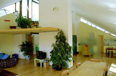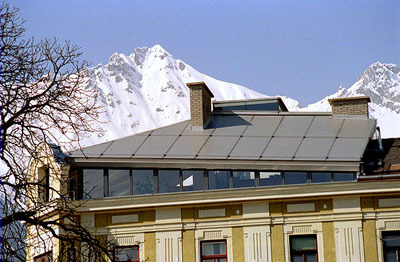 Die einschlägigen Bauvorschriften machen den Architekten die Aufgabe, zeitgemäße Wohnungen in alten Dächern unterzubringen, oft nicht leicht. Unter Hinweis auf Beeinträchtigungen des historischen Stadtbildes sind oft nur kleine Dachflächenfenster oder Gauben gestattet und eine Veränderung des Dachumrisses wird nur in den seltensten Fällen geduldet. Es braucht also gute Argumente gegenüber den Behörden und viel planerisches Geschick, um die begehrte Wohnung im Dach so zu gestalten, dass weder tote Flächen un ter den Dachschrägen noch dunkle Zimmerschluchten wegen unzureichender Fensteröffnungen entstehen. Dem Architektenteam Georg Pendl und Elisabeth Senn ist es bei einem Dachgeschoßausbau in der Innsbrucker Schillerstraße gelungen, beides zu vermeiden.
