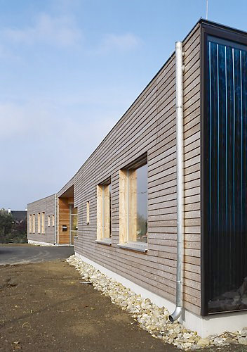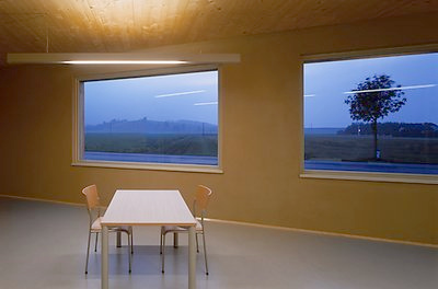 Die intelligente Vereinfachung des Baukörpers und der weitgehende Verzicht auf Sonderanfertigungen im Fenster- und Türbereich ermöglichten die Finanzierung eines hohen Dämmstandards und eines avancierten Energiekonzepts mit kontrollierter Lüftung mit Wärmerückgewinnung und Erdkollektor sowie mit Sonnenkollektoren für die Warmwasserbereitung und Heizungseinbidung. (Text: Gabriele Kaiser, 15.01.2004)