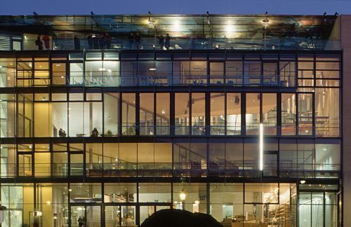 Das Ergebnis zum Pariser Platz hin wirkt nun allerdings nicht überzeugend, da das gläserne Gebäude in seinem verschatteten Winkel tagsüber eher gesichtslos anmutet. Man kann es nur begrüssen, dass sich die Akademie vom Neo-Stil der kritischen Rekonstruktion ihrer Nachbarn distanziert. Aber einen expliziten Antipoden zur geschlossenen Gesellschaft aus Stein rundherum stellt sie nicht dar. Statt auf eine dezidierte Stellungnahme setzt man auf der Vorderseite auf ein verschroben anmutendes Zitat in Gestalt einer Gitterstruktur, die an die Proportionen des einstigen Altbaus erinnern soll. Die ewige Berliner Dichotomie von Glas contra Stein wirkt heute noch anachronistischer und provinzieller als schon zur Zeit des Architekturstreits: Eine Vision von zeitgemässem Städtebau gibt der Pariser Platz nicht ab.