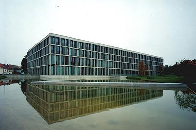 Wie ein Parthenon steht der Neubau da, ernst, statuarisch, sein Umfeld auf dem Glacis der barocken Stadtbefestigung beherrschend. Er verkörpert nicht die domestizierte Postmoderne, mit der seit der Wende die Erfurter Innenstadt rasch aufgefüllt wurde, nicht die gläserne High-Tech- Mode, wie sie seit kurzem am Fuss des Petersbergs anzutreffen ist. Man fühlt sich durch die karge Kombination von Sichtbeton und Naturstein an neuere spanische Architektur erinnert, an Livio Vacchini oder andere Schweizer Vertreter der Neuen Einfachheit.