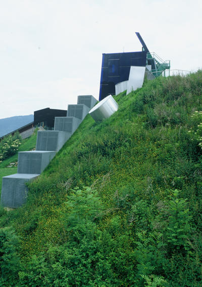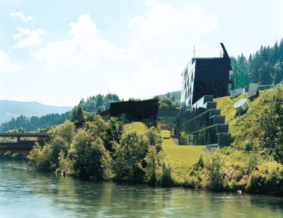 Mittelalterliche Baudenkmäler und die Lage an der Mur, eingebettet in die waldreiche Berglandschaft der Tauern und Nockberge, machen die steirische Bezirkshauptstadt Murau zu einem beliebten Ferienziel. Seit der Landesausstellung 1995 mit dem Titel „Holzzeit“ positioniert sich die Gegend erfolgreich als Holzregion und hat sich mit einigen interessanten Holzbauten auch einen Platz in der jüngeren Architekturgeschichte erobert. Gern wird in Gegenden wie diesen das landschaftsgerechte Bauen thematisiert, und zwar so gut wie immer aus einem Blickpunkt, der den Dualismus von (intakter) Landschaft und (künstlichem) Gebäude fokussiert. Malerische Landschaften können aber trügerisch sein, die ideale Landschaft ist Fiktion, betont Wolfgang Tschapeller. Seit ihrem leider unrealisiert gebliebenen Entwurf für das Trigon-Museum in Graz beschäftigen sich Tschapeller und Friedrich W. Schöffauer damit, die Polarität zwischen Gelände und Gebäude aufzuheben und die Architektur als Modulation der Landschaft zu verstehen.