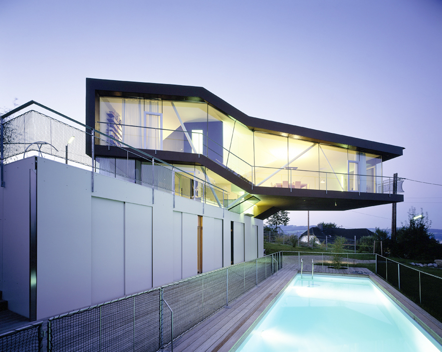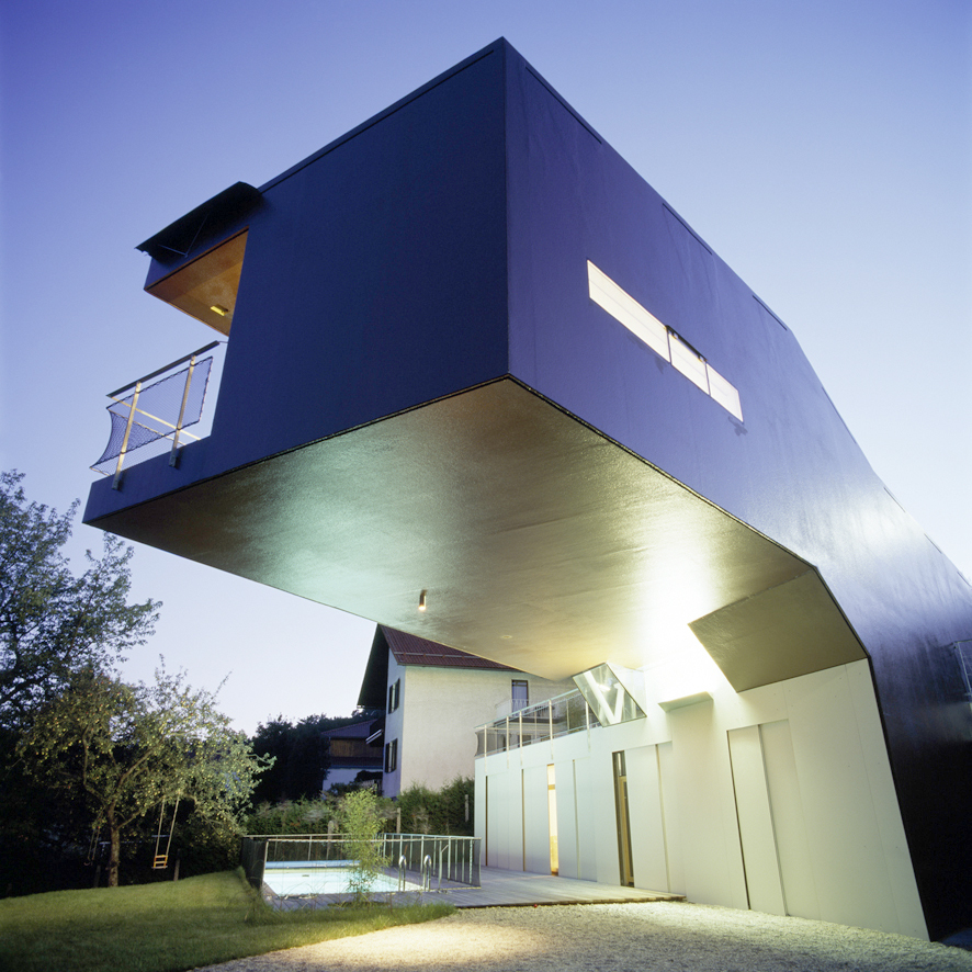 Wie ein UFO, verdreht, geknickt und dynamisch schwebt ein expressives Haus am Steilhang des Pöstlingbergs. Souverän gleitet es übers nachbarliche Einfamilienhausgemenge, weitet die Perspektiven auf Umgebung, Raum und das Wohnen überhaupt. Der Bauherr hat Mut zum Experiment, seine Werbeagentur hatten die „caramel- architekten“ und Designer Fritz Stiper mit Esprit gestaltet, auch beim Haus setzte er aufs bewährte Team. Formvollendet dem Ort erwachsen, schafft es optimalen Lebensraum.