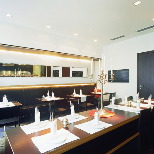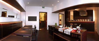 Ergänzt wurde 2006 das Angebot der Hollmann Beletage durch ein Restaurant im benachbarten Heiligekreuzerhof, dem Hollmann Salon, der ebenfalls von cp architektur gestaltet wurde. (Text: Architekt)