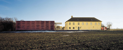 Auf den letzten Metern der Fahrt zum neuen österreichischen Zentralfilmarchiv am Rande von Laxenburg kann es leicht passieren, dass der Besucher sich in ein Road Movie versetzt fühlt. Man verlässt die Landstraße an einer riesigen, senkrecht ins Feld gerammten Stahlplatte, die so schwarz und unbeschriftet in der Gegend herumsteht wie der rätselhafte Monolith in Stanley Kubricks 2001 - Odyssee im Weltraum, aber durch ihre seitlichen Perforationen verrät, dass wohl eher jemand an einen Filmstreifen gedacht hat. Der Wagen ist auf eine Schotterpiste geraten, die schnurgerade durch die Felder führt. Niederösterreich wird ein paar Herzschläge lang zu New Mexico, wo man auf einer „dirt road“ wie dieser eine Staubwolke aufwirbeln würde, die den Besuch schon von weitem ankündigt. Die Reise endet vor einem trutzigen, spätbarocken Hauskasten, ehemals Amtssitz des Laxenburger Parkförsters. Das Forstgut setzt an der Straße eine präzise Kante ins Nirgendwo, die der Neubau des Zentralfilmarchives aufnimmt und die Zufahrt noch ein Stück verlängert. Dann ist Sackgasse. Thelma und Louise bräuchten nur auf's Gaspedal zu treten und könnten in den Schlosspark durchbrechen, der hinter einem Wäldchen beginnt.