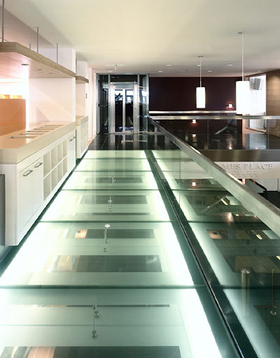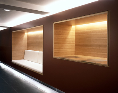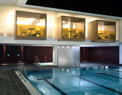 Aus dem kompakten dreigeschossigen Volumen in der Salzburger Innenstadt schiebt sich das Herzstück, der Poolbereich, als Kubus heraus. Das Spiel mit Wasser und Licht bildet das atmosphärische Leitmotiv der architektonischen Inszenierung. In drei geräumigen Studios, den sogenannten Club-Boxen, werden die Mühen körperlicher Ertüchtigung in edler Fassung exponiert. Die großen, scheinbar halterlos in die Holzrahmen eingelassenen Glasscheiben der Boxen sorgen für den nötigen Durchblick, sodass man auch von der Lounge-Bar einen Blick auf den 25 m-Pool riskieren kann. Nach Aussage der Architekten legen 90 Prozent der Interessenten großen Wert darauf, den Pool zu sehen, benutzt werde er dann aber nur von 10 Prozent. Eine Beauty-Zone, ein Restaurant, das medizinische „Kompetenzzentrum“ sowie ein Kinderbetreuungsbereich dürfen im anspruchsvollen Konzept von Holmes Place nicht fehlen. Bei allem Respekt für das Schöne und Wohlgeformte: Könnte man sich angesichts solch umfassender Perfektion nicht wieder für das Nachlässige, Zufällige, Undisziplinierte erwärmen, und sei es auch nur auf Basis einer trotzigen Unsportlichkeit? (Text: Gabriele Kaiser)