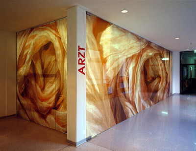 Jedoch ist es den Architekten gelungen, den bloßen Sanierungsansatz um ein architektonisches Konzept zu bereichern, das von der räumlichen Restrukturierung und Inneneinrichtung über das grafische Leitsystem bis zur Gartengestaltung reicht. Und anders als in Fällen alibihaft applizierter Kunst-am-Bau spielen die „chromatischen Interventionen“ von Barbara Putz-Plecko in diesem integrativen Gesamtansatz eine wichtige Rolle.