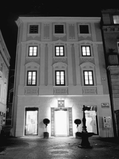 Das Gebäude Untere Landstraße 1 liegt im Herzen der Kremser Altstadt und erfordert aufgrund dieser prominenten Lage in der Achse des Täglichen Marktes besondere gestalterische Anstrengungen. Diesem hohen Anspruch kommt der Architekt sowohl mit der Gestaltung der Außenfassade als auch mit der Einrichtung der Innenräume nach.