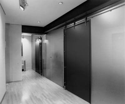 Das stattliche Haus mit drei Fensterachsen zur Unteren Landstraße beherbergt im Erdgeschoß die Betreuungszone und die Selbstbedienungszone. In den beiden Obergeschossen sind Büroräume und Besprechungszimmer für das Bankgeschäft untergebracht. Neue Materialien, insbesondere getönte und teilweise färbige Glaswände bestimmen die Raumatmosphäre.