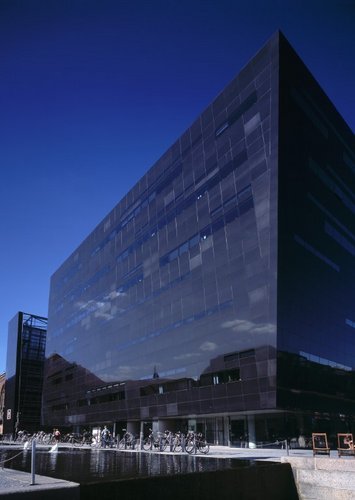 Nach zwei Jahren Planung und vier Jahren Bauzeit konnte jüngst nun die auf Slotsholmen gelegene erweiterte Königliche Bibliothek eröffnet werden. Entstanden ist ein neues Wahrzeichen, ein herausragender Solitär in der sonst - im positiven Sinne - für ihre zurückhaltend ins historische Zentrum eingegliederten Neubauten bekannten Stadt. In unmittelbarer Nähe von Schloss Christiansborg und Arne Jacobsens dänischer Nationalbank direkt am Wasser errichtet, steht das siebengeschossige, schwarz glänzende Prisma des Neubaues, der in seinen Ausmassen so wuchtig und kantig ist wie der 1906 von H. J. Holm erstellte Altbau. Die beiden Gebäude sind durch eine Strasse getrennt, die in Ost-West-Richtung entlang des Kanals verläuft. Schon einmal, nämlich 1968, wurde die Königliche Bibliothek erweitert, ebenfalls zum Kanal hin, mit einem der gesamten Länge des würfelförmigen Altbaues folgenden kubischen Anbau. Geschickt wurde nun diese erste Erweiterung, die den Altbau eher entstellte als respektierte, in ein überzeugendes Gesamtkonzept integriert, aufgestockt und wie der Neubau mit schwarzem südafrikanischem Granit eingekleidet.