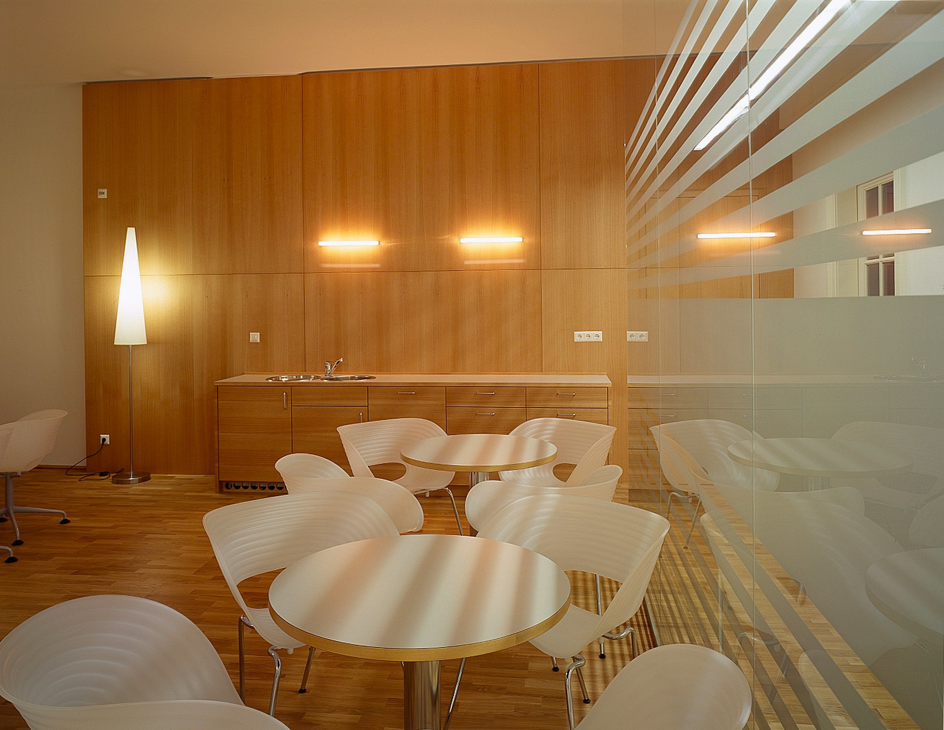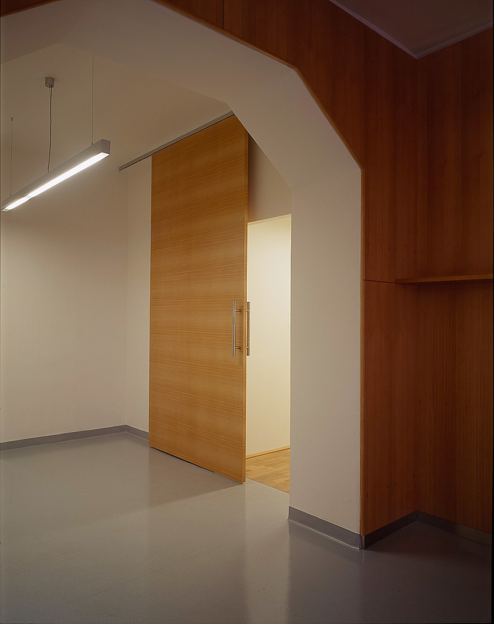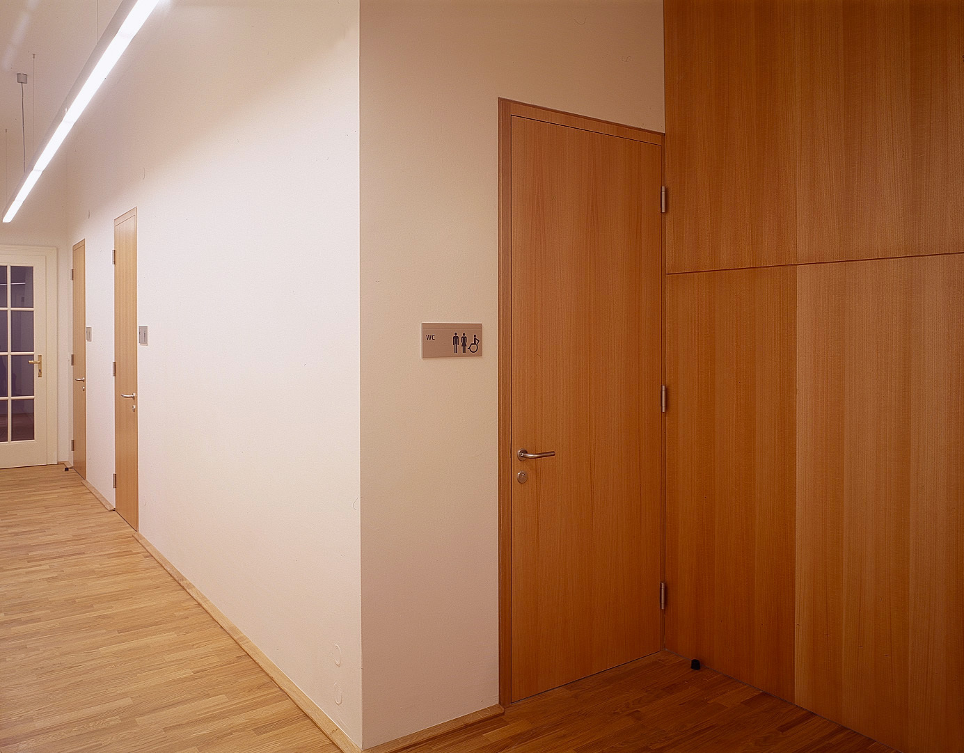 Auf ein modisches Überdesign wurde bewusst verzichtet und der Klärung räumlicher und organisatorischer Gegebenheiten der Vorzug gegeben. Kostengünstig wurde der Bestand verbessert und neu organisiert. Dem ehemals unübersichtlichen Grundriss wurden neue Orientierungspunkte implantiert.